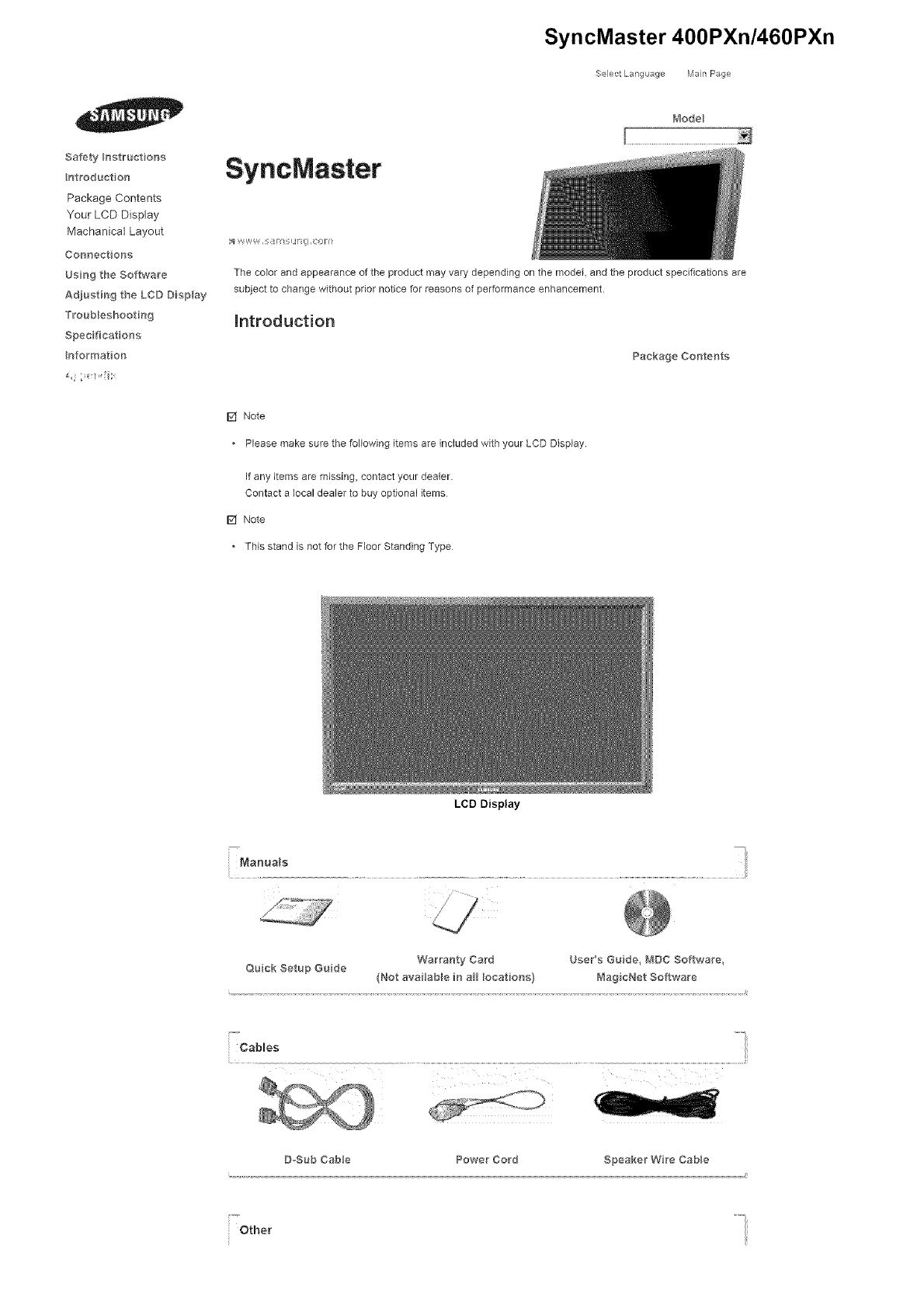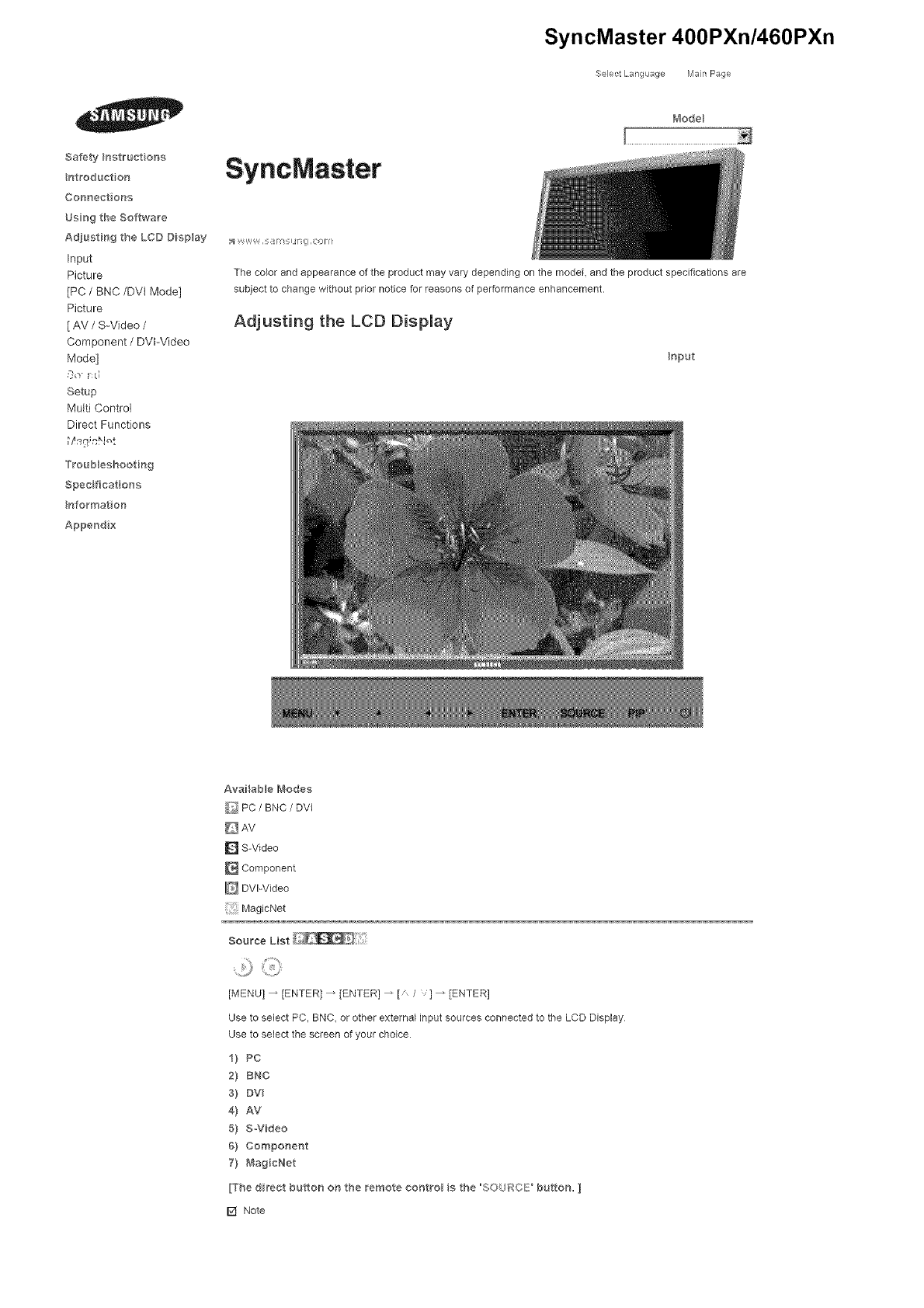 Samsung 400PX User Manual LCD MONITOR Manuals And Guides L0802463