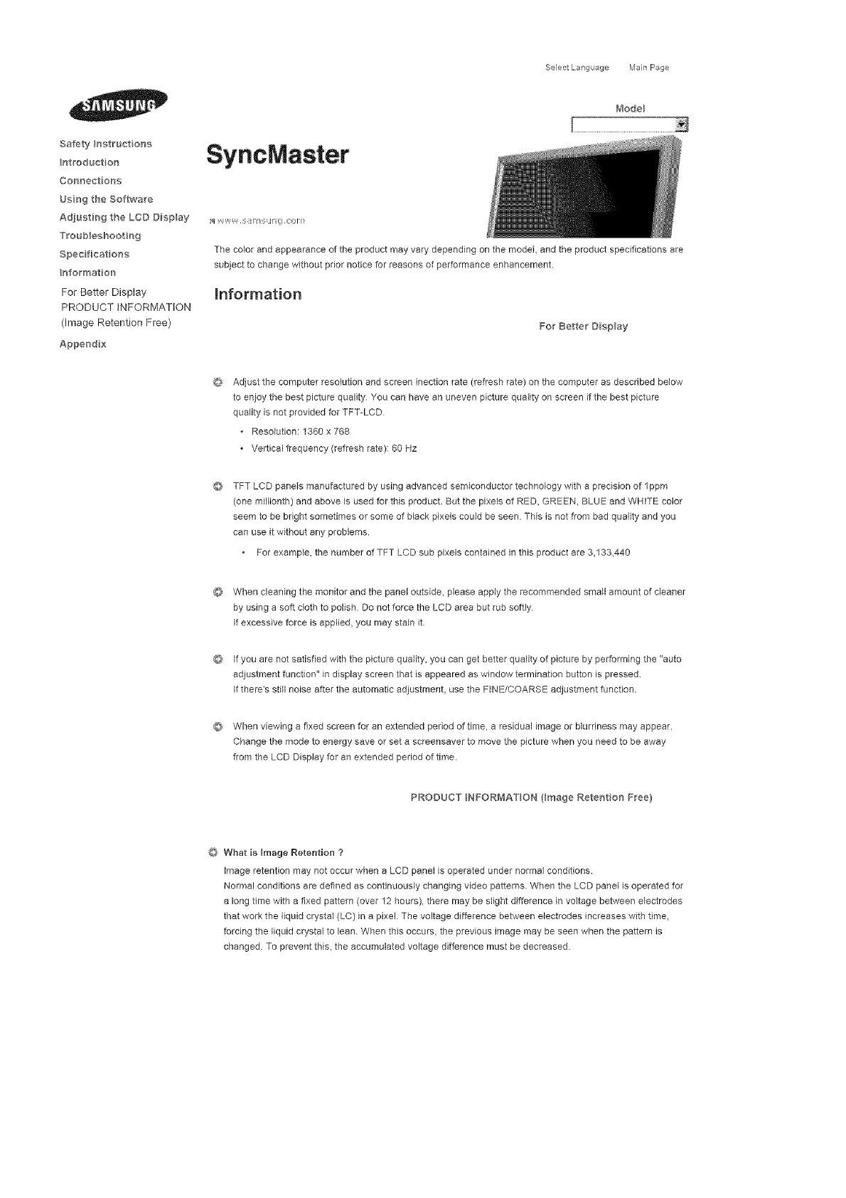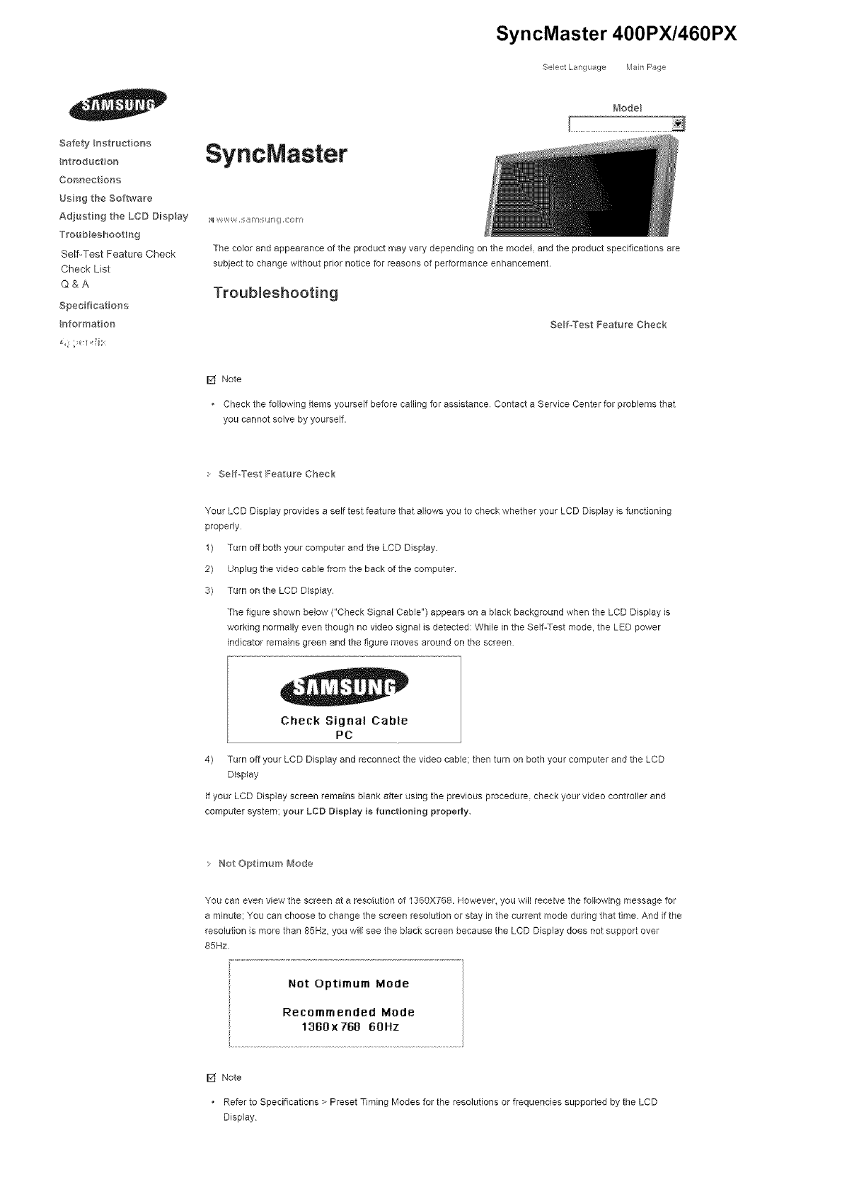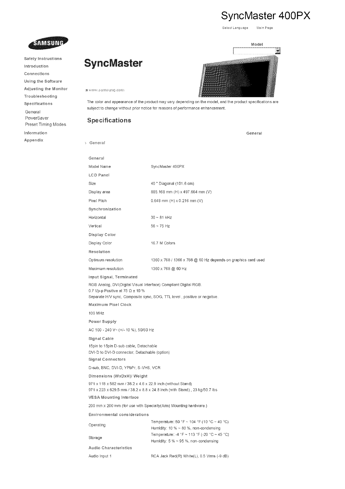 User Manual: Samsung 400PX 400PX SAMSUNG LCD MONITOR - Manuals and Guides View the owners manual for your SAMSUNG LCD MONITOR #400PX. Home:Electronics Parts:Samsung Parts:Samsung LCD MONITOR Manual