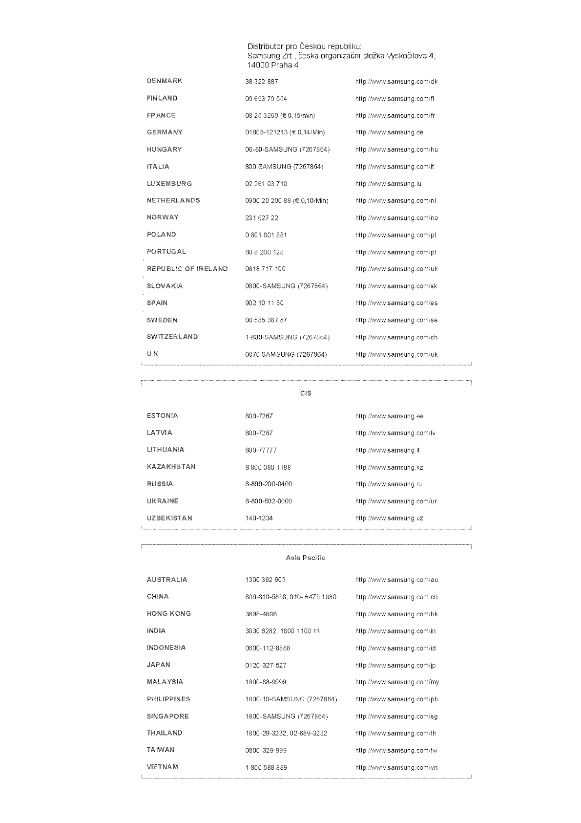 LITHUANIA 800-77777 http:/_ww.samsung It