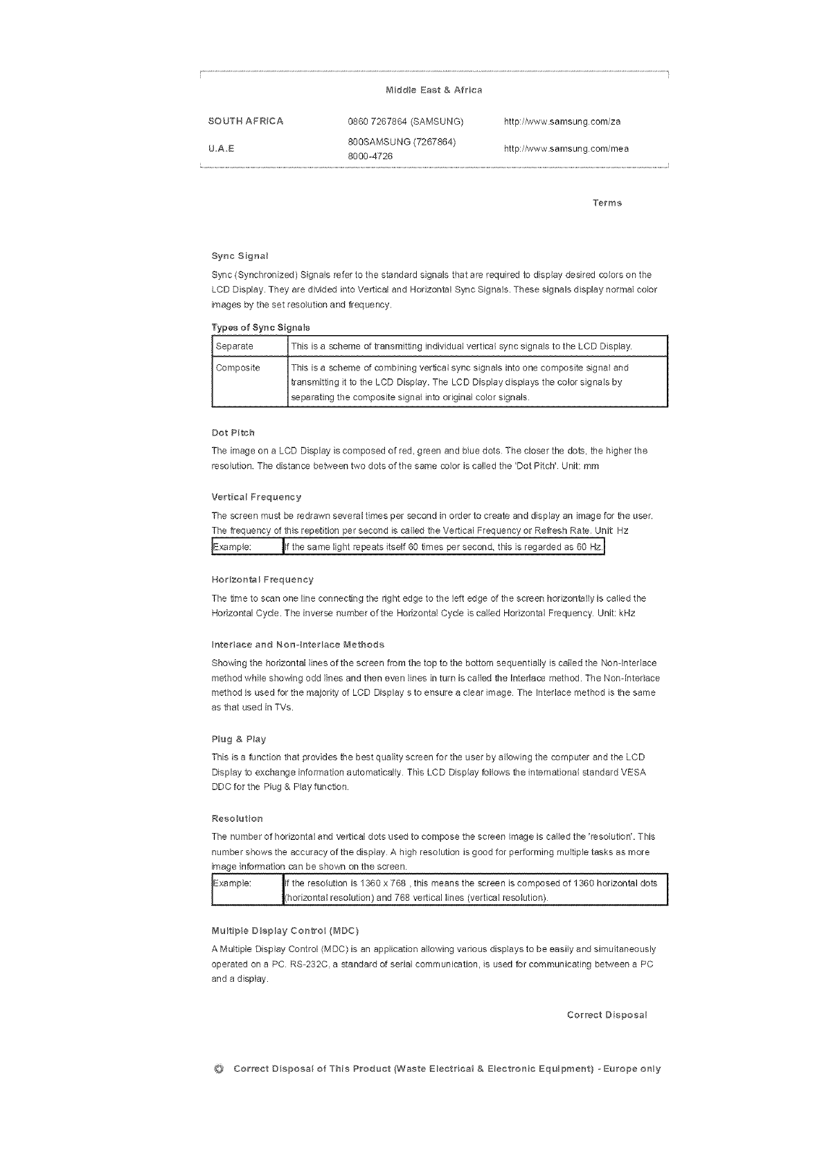 SOUTH AFRICA 0860 7267864 (SAMSUNG) http:/hdww.samsung com/za