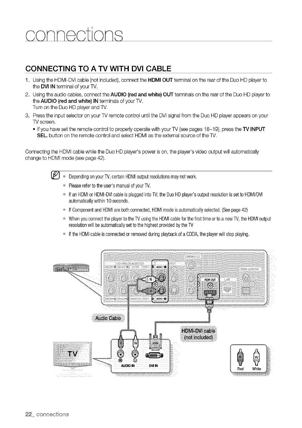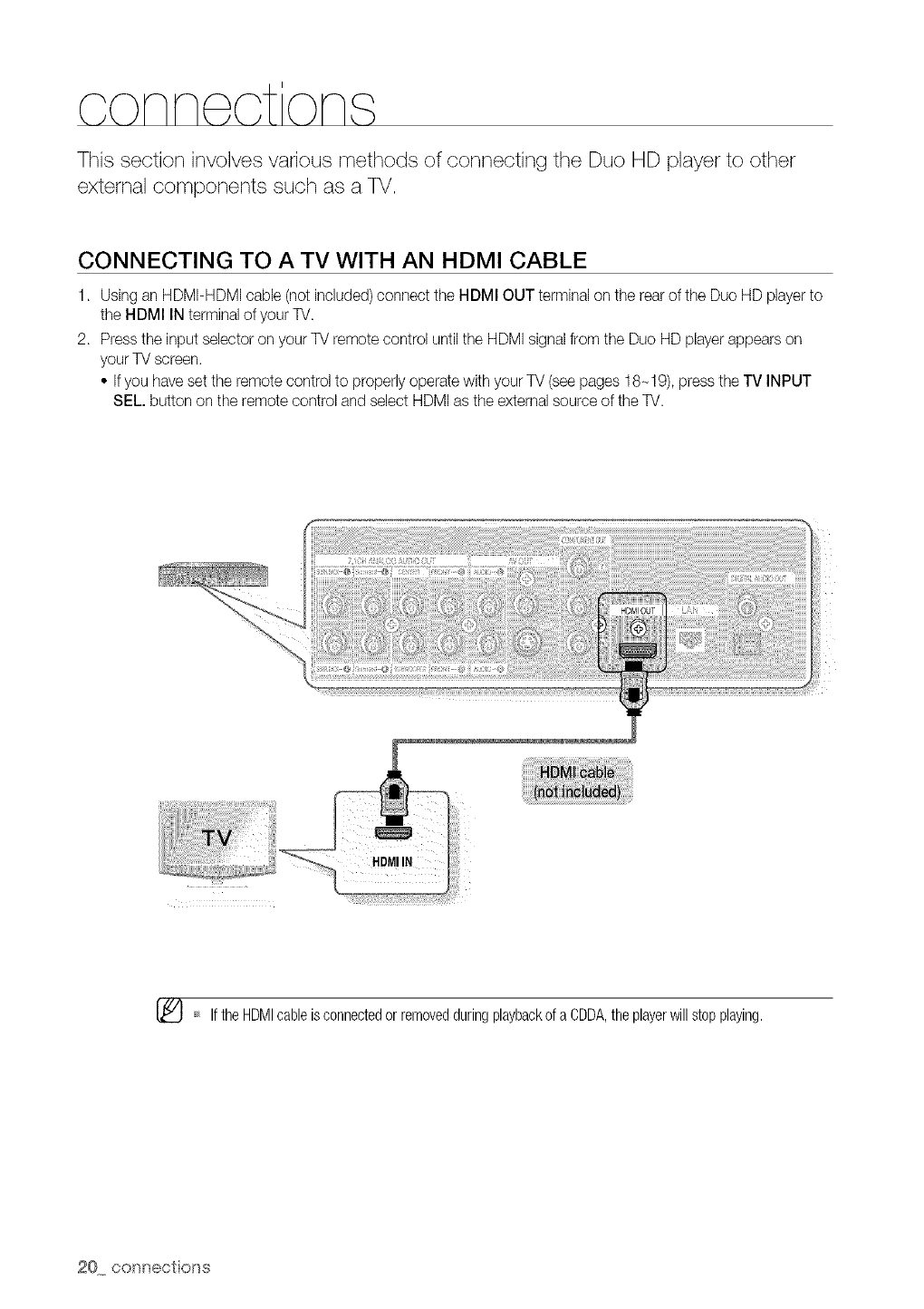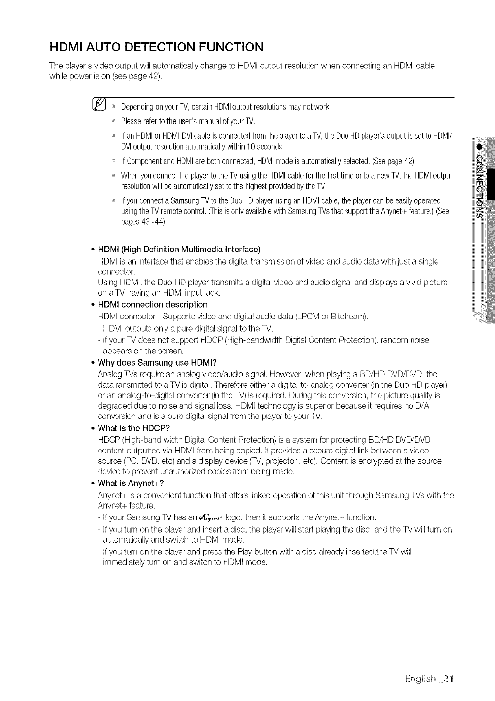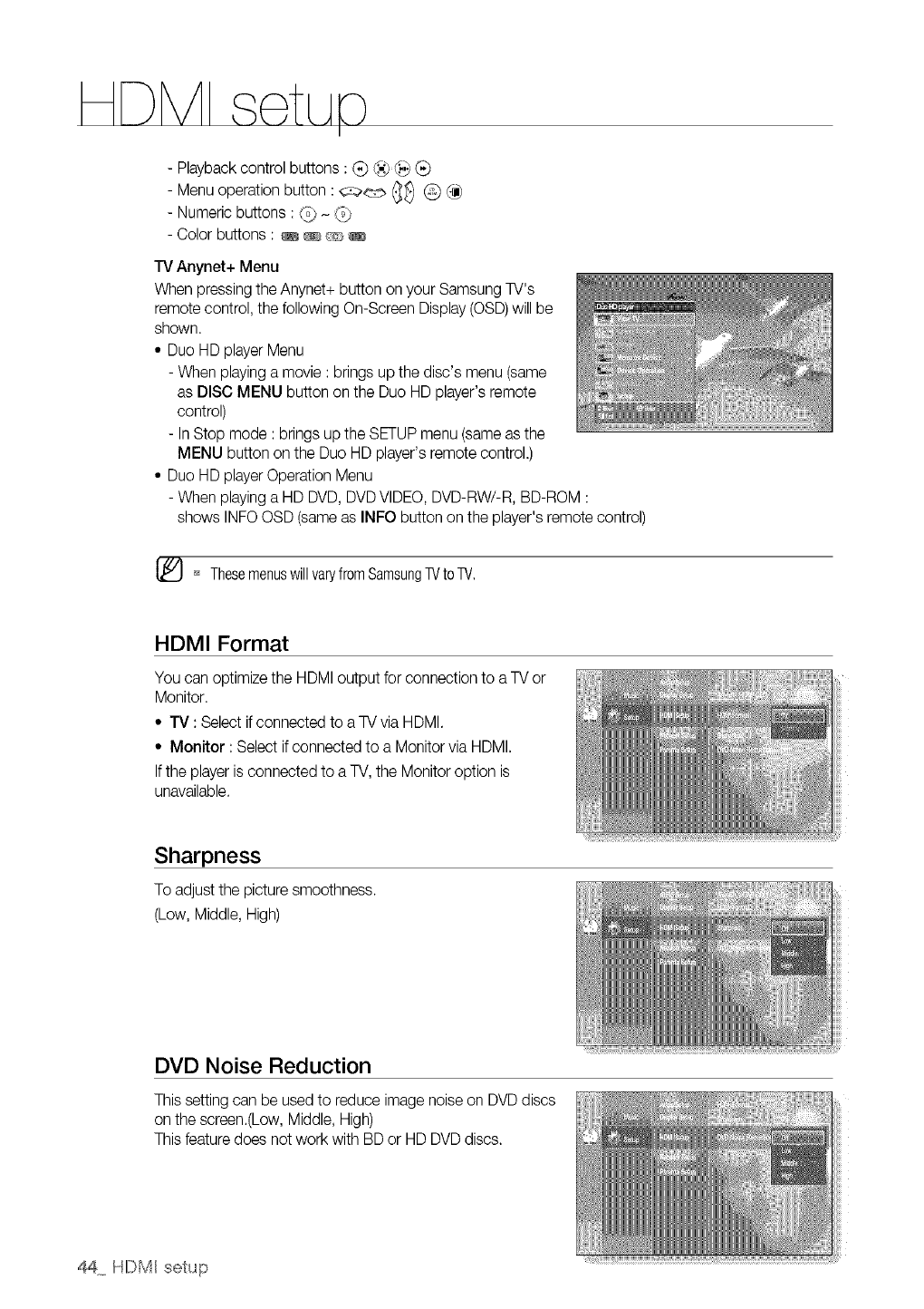 Some BD/HD DVD discs may require using the player's HDMI OUTto view high-definition content. The ability to