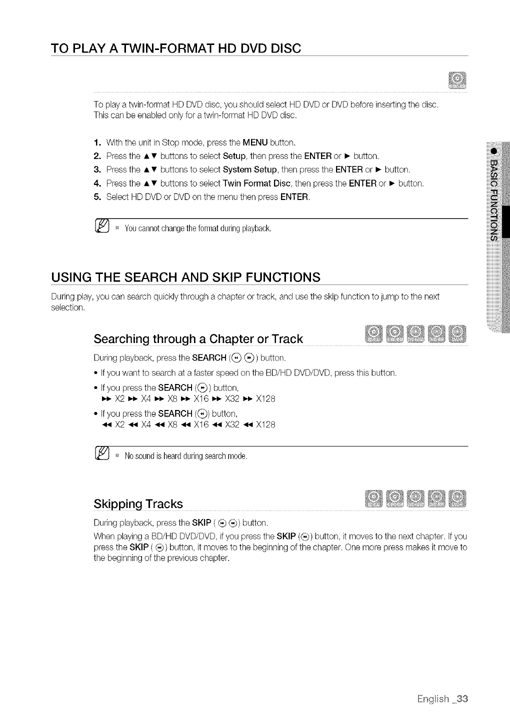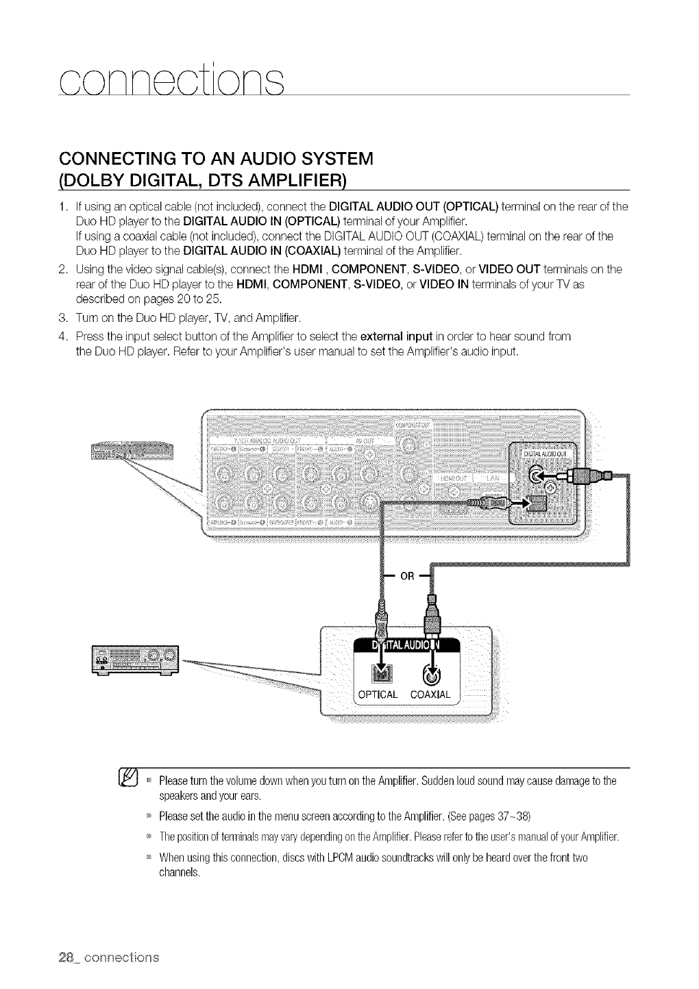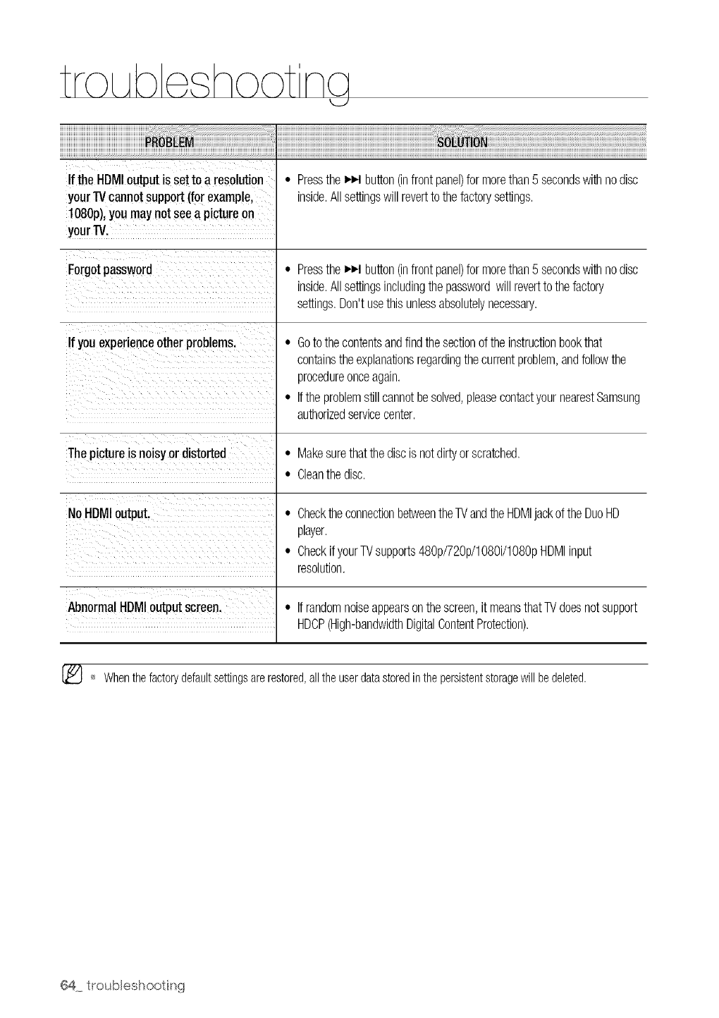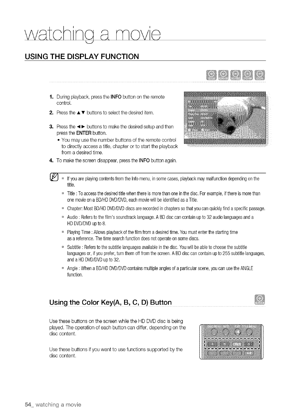 Some BD/HD DVD discs may require using the player's HDMI OUTto view high-definition content. The ability to
