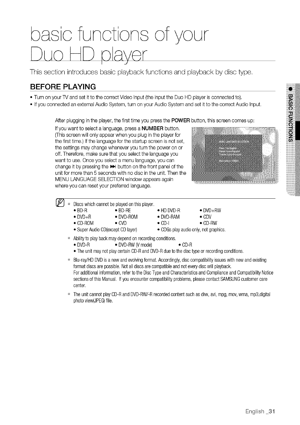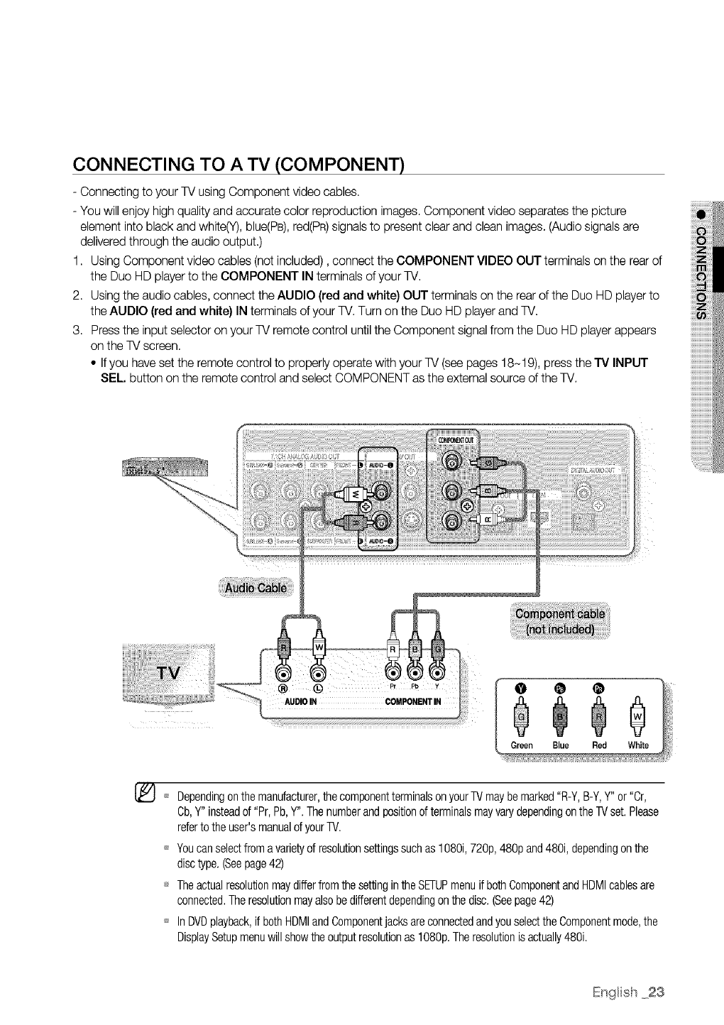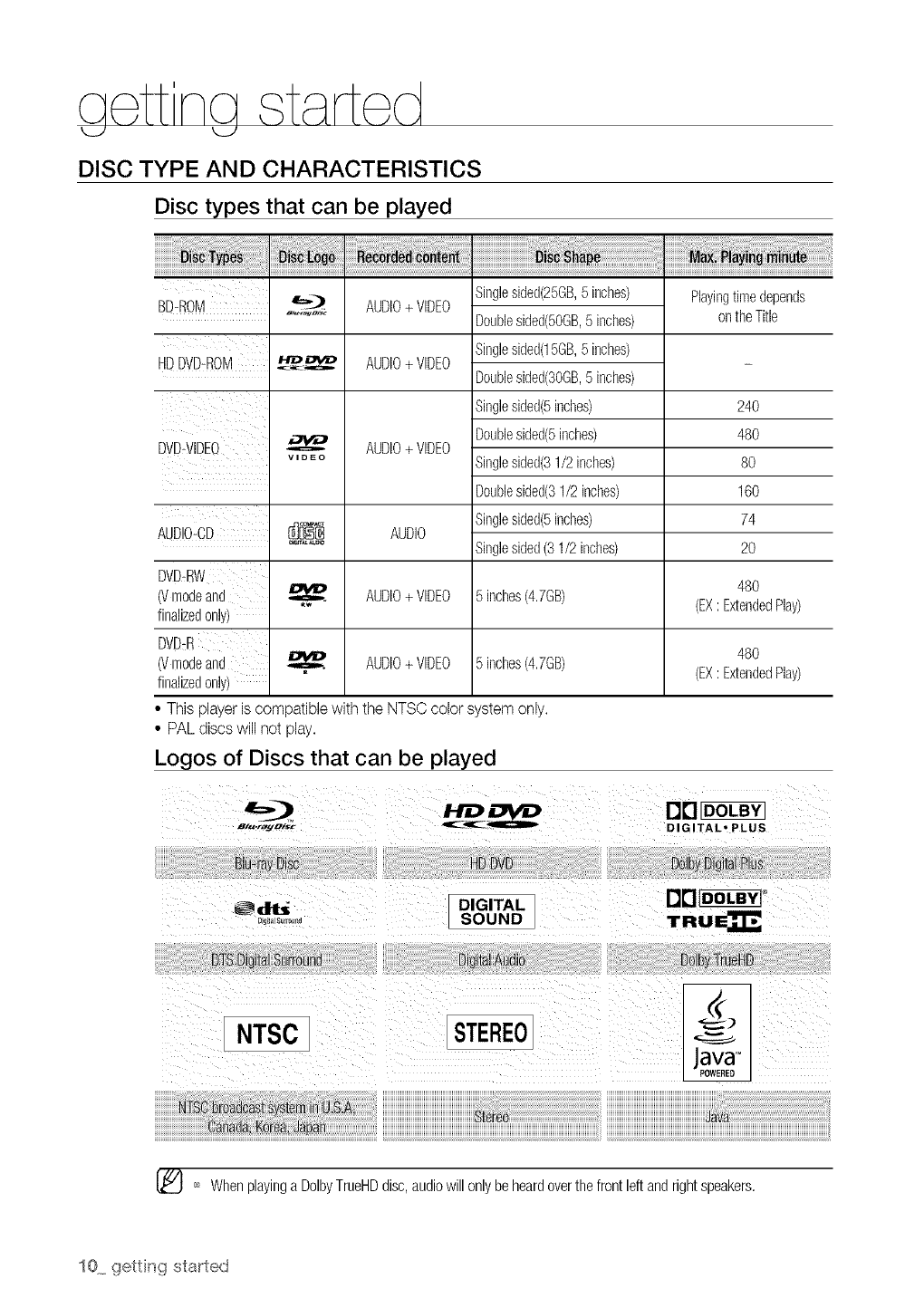 view high-definition content on BD/HD DVDdiscs may be limited depending on the resolution of your TV.