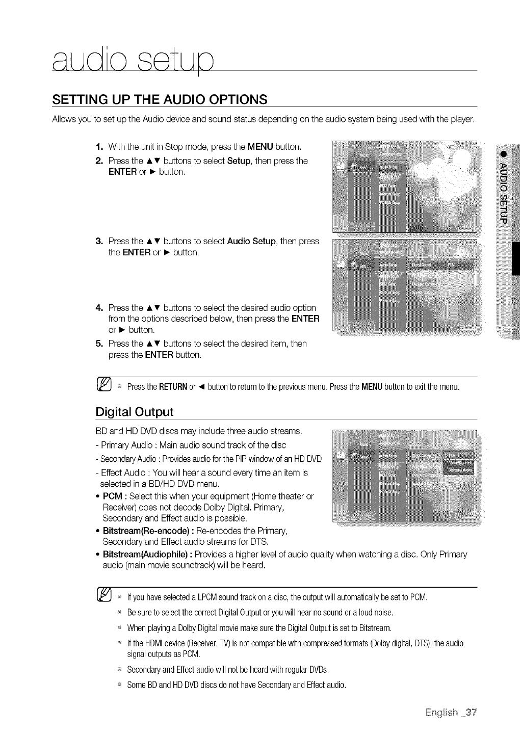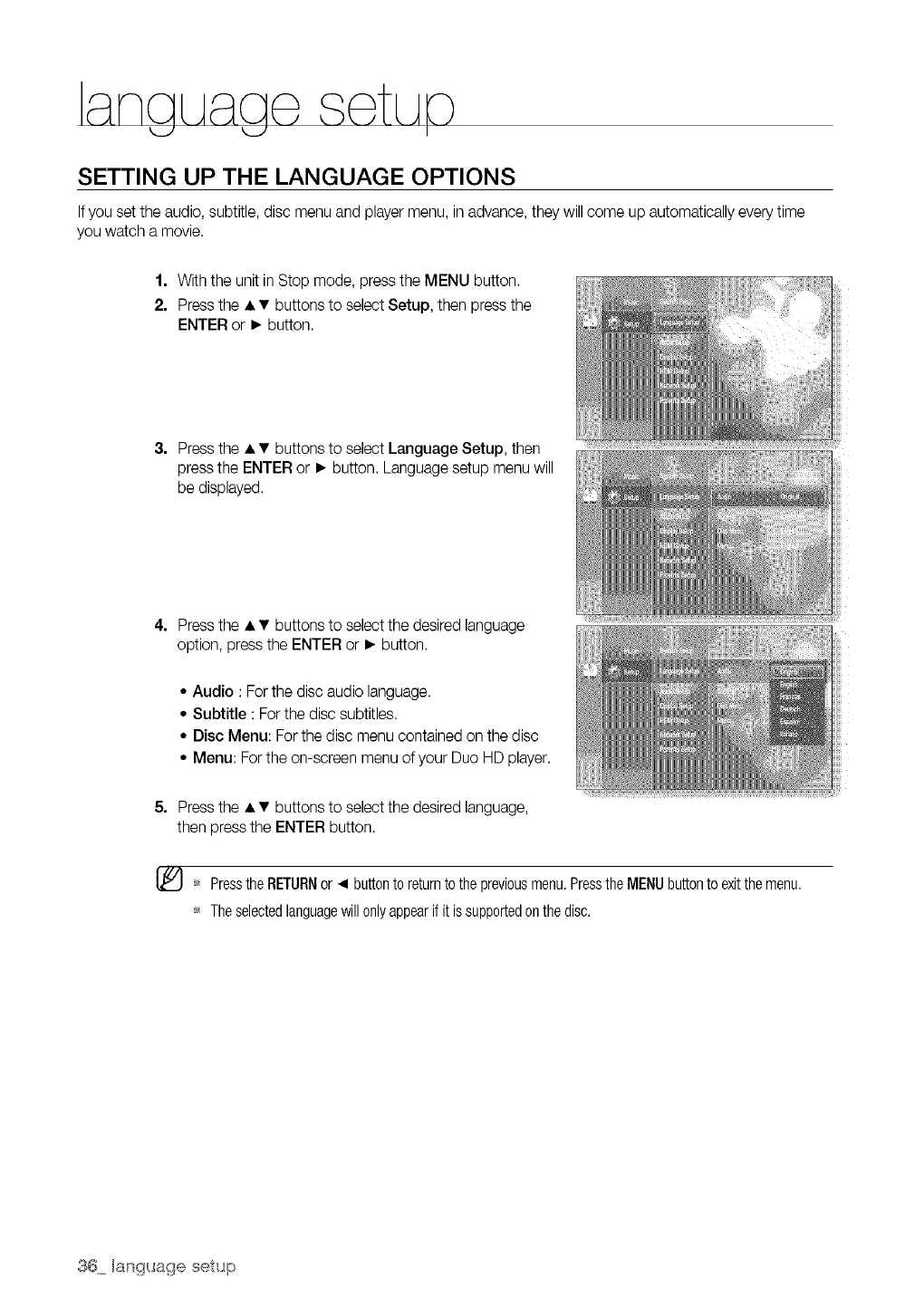 When you highlight or select a menu option on a disc, sounds can be heard such as button clicks or a voice-over
