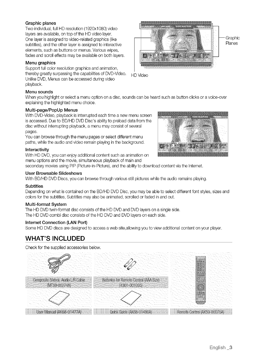 To view high-definition contents on a BD/HD DVD Disc, an HDTV (High DefinitionTelevision) is required.