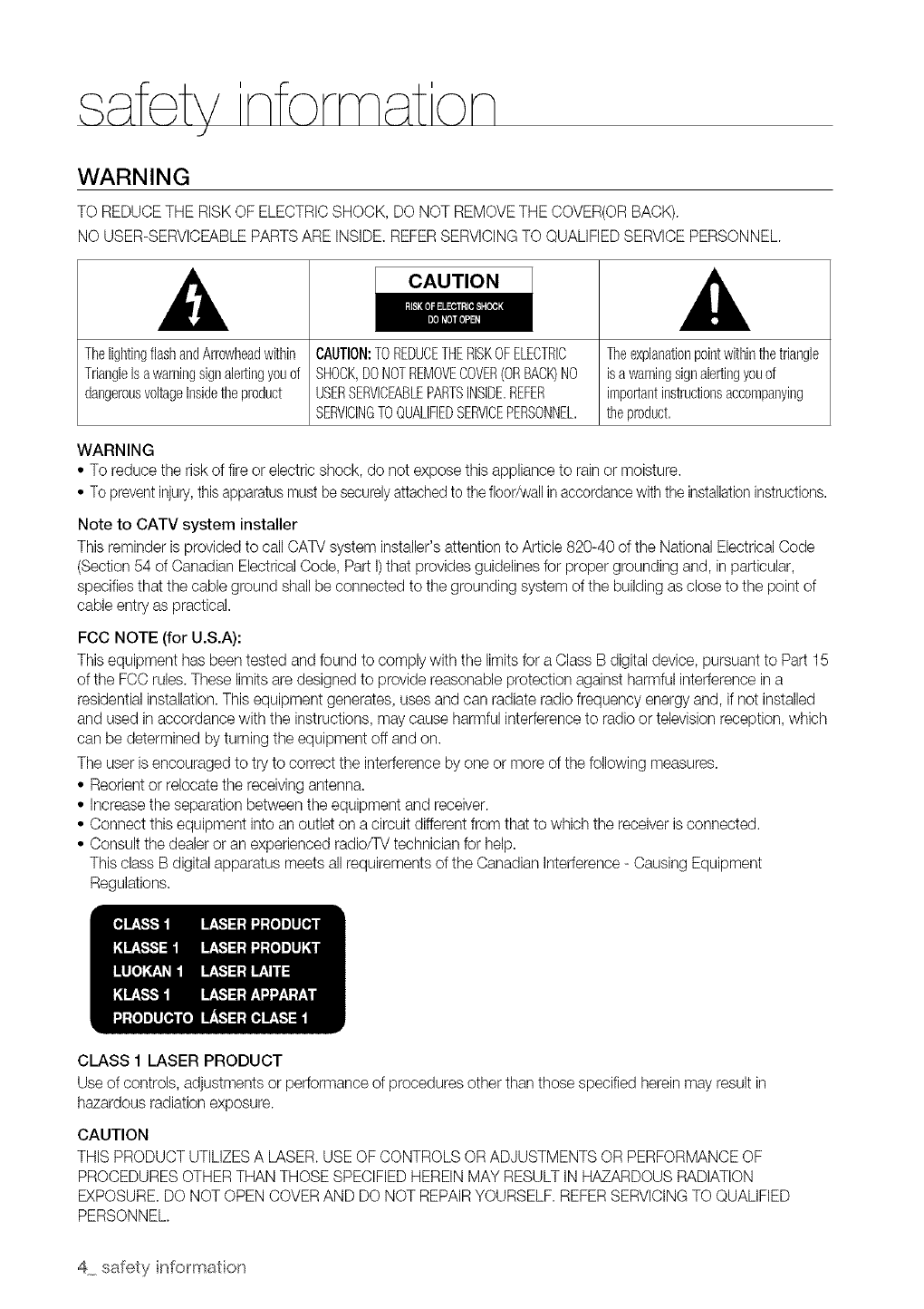 TO REDUCE THE RISK OF ELECTRICSHOCK, DO NOT REMOVE THE COVER(ORBACK).