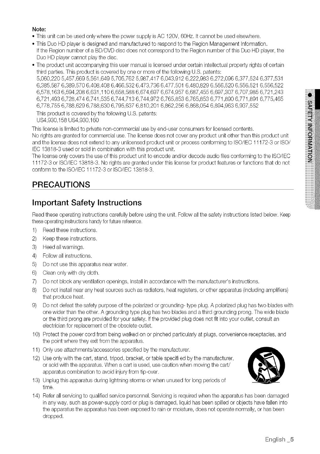•To reduce the risk of fire or electric shock, do not expose this appliance to rain or moisture.