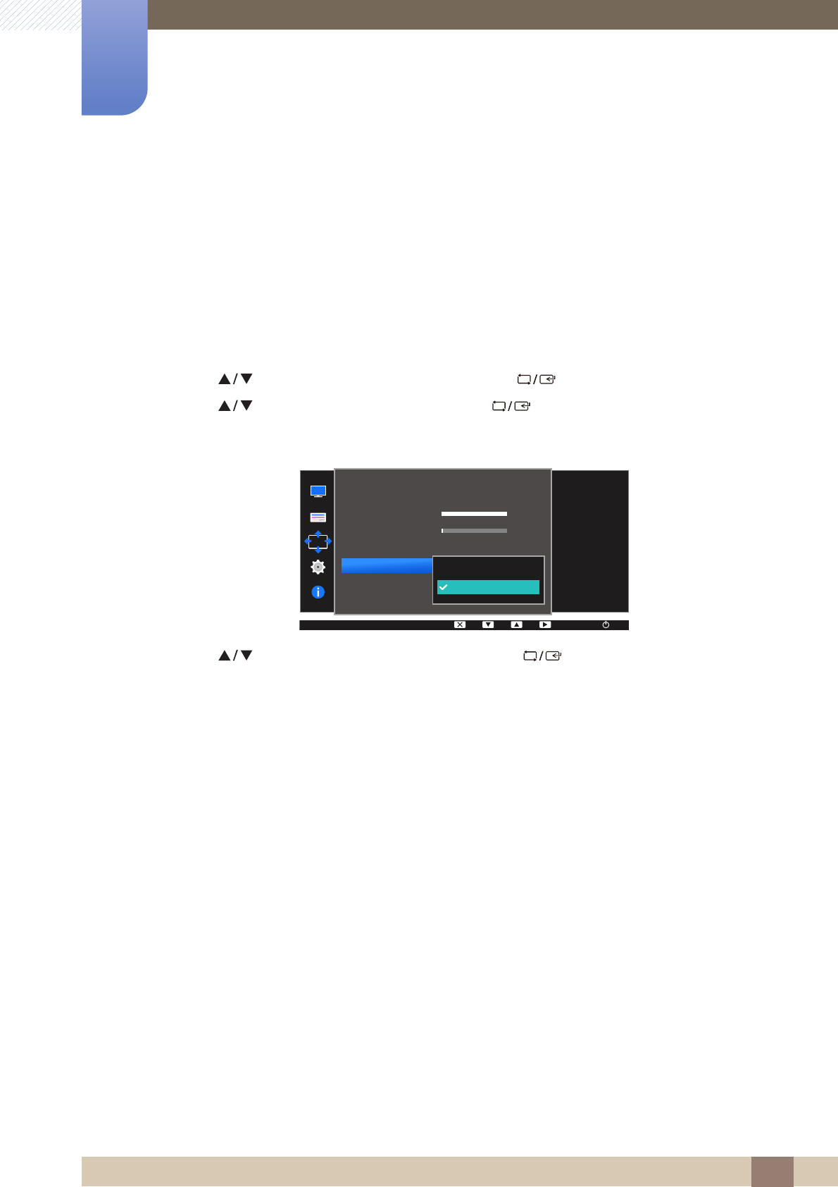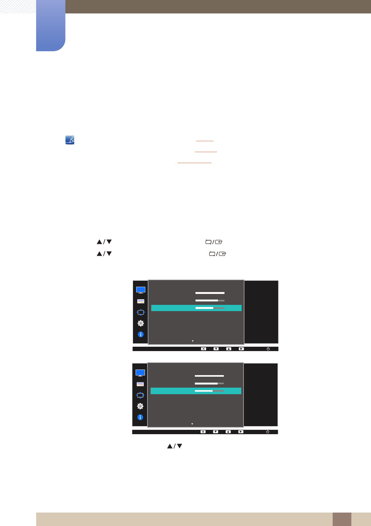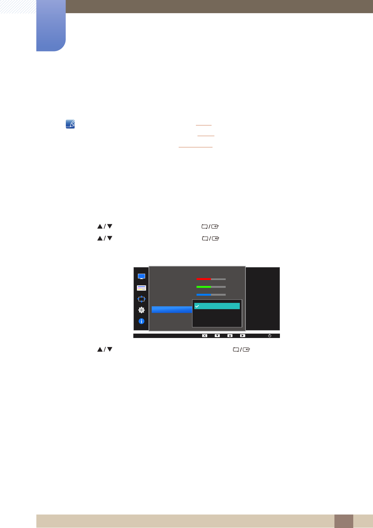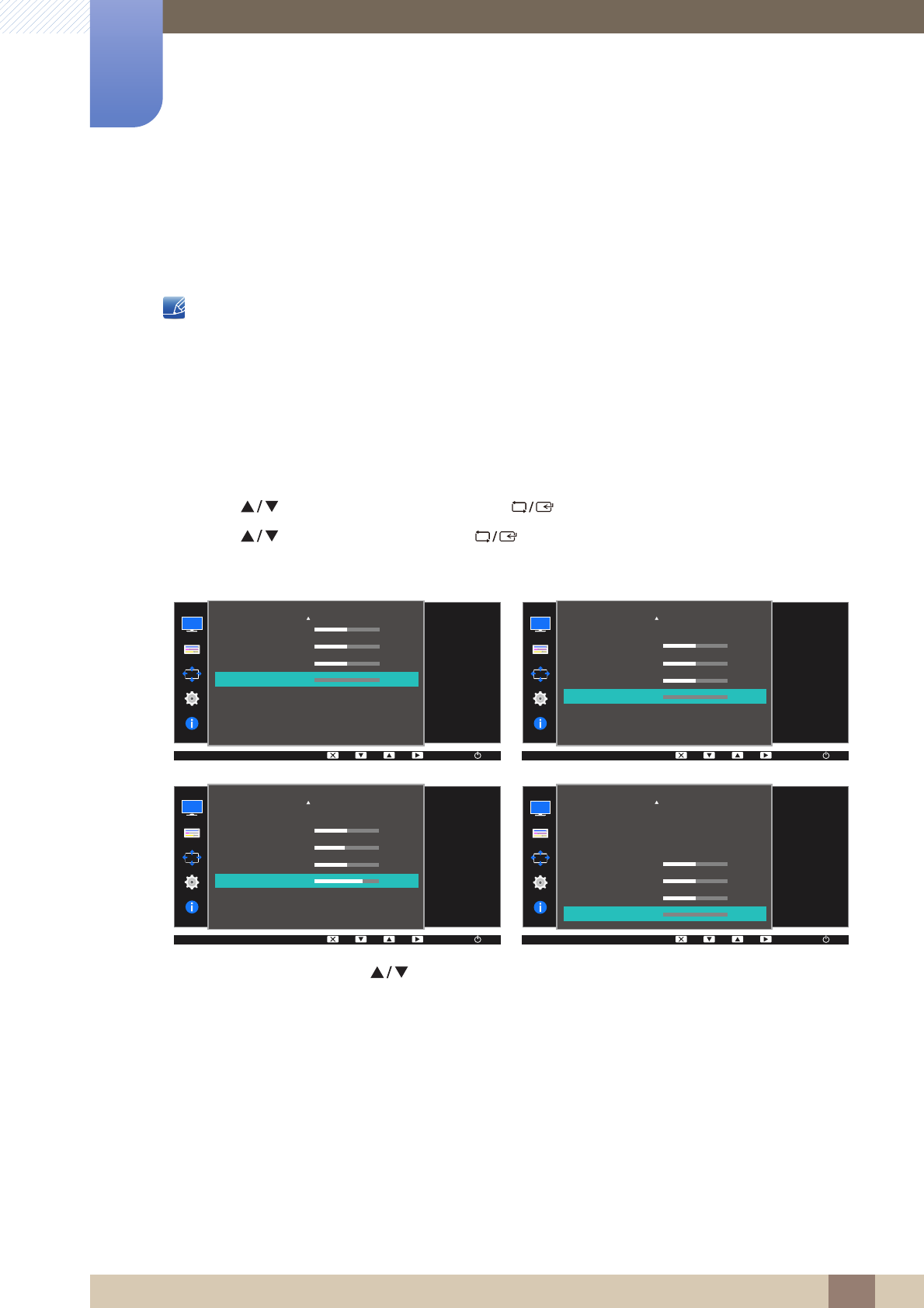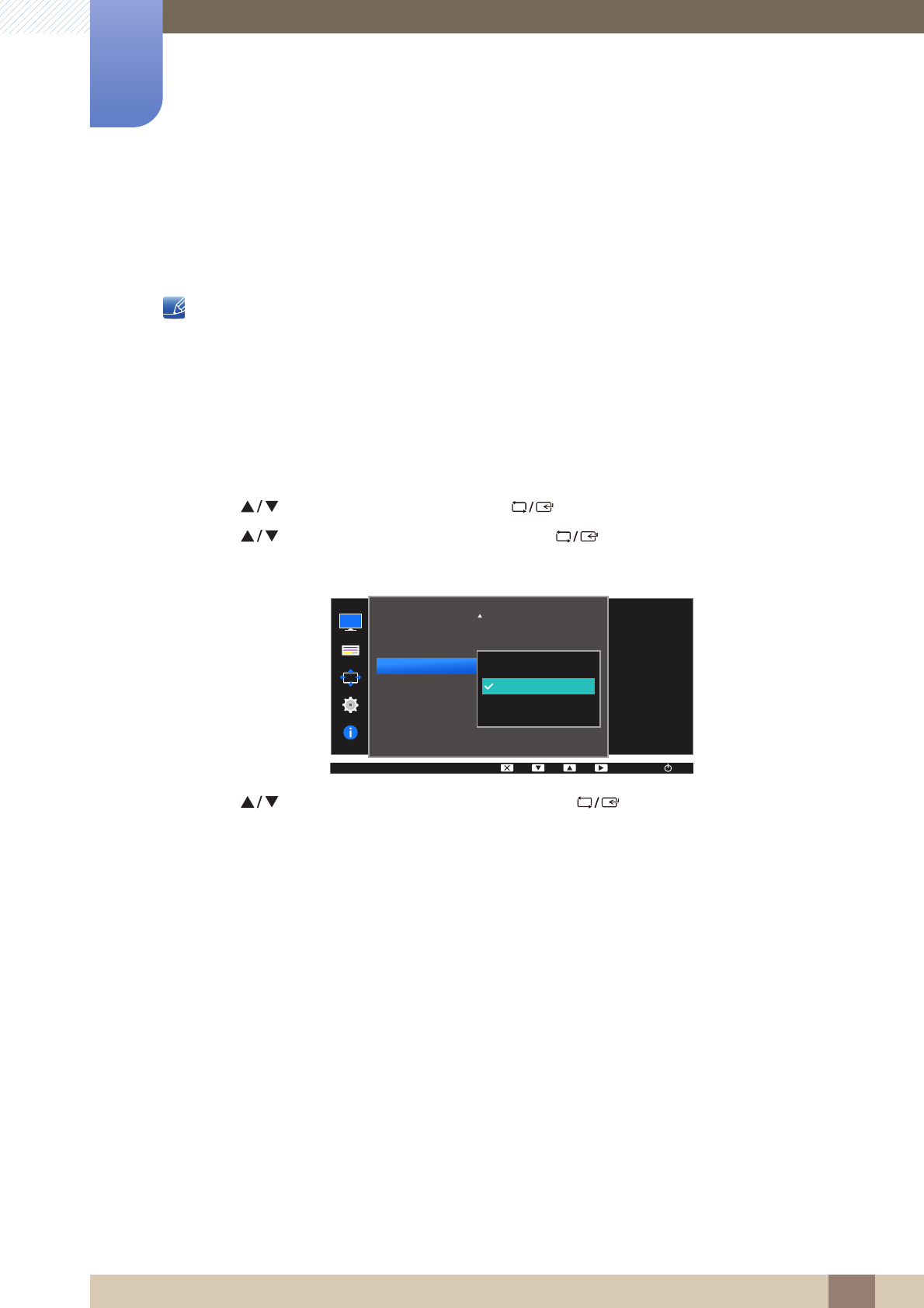 On screen display (OSD) allows you to customize on-screen settings to optimize the picture quality as