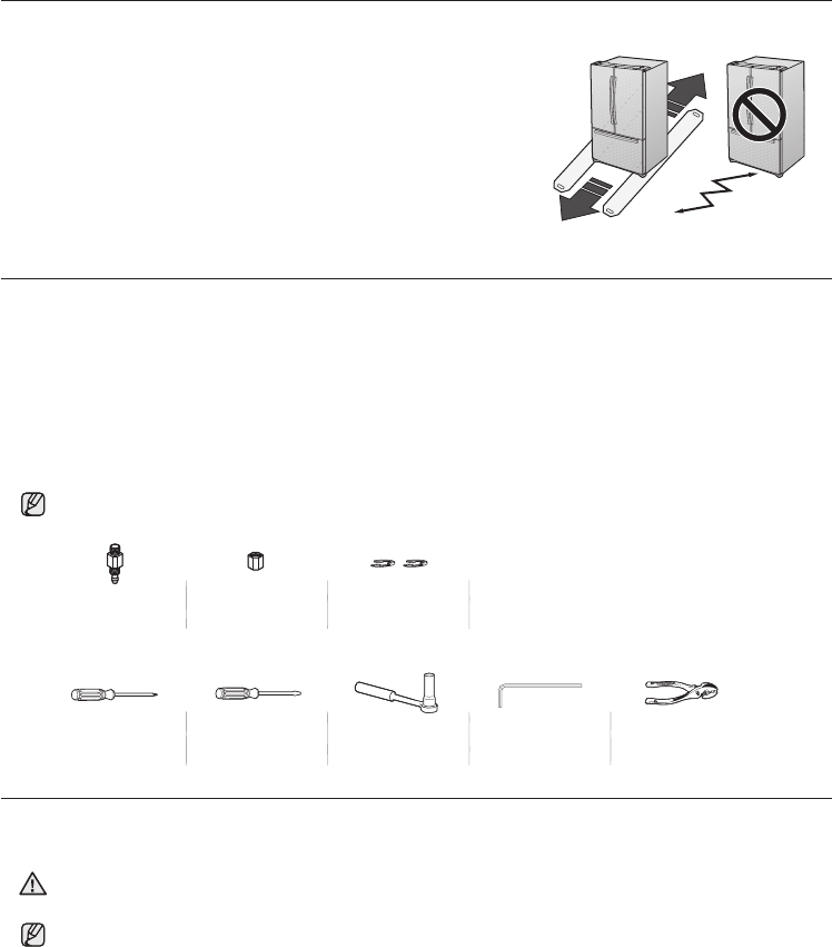 • Do not install the refrigerator in a damp place or place where it may come in contact with