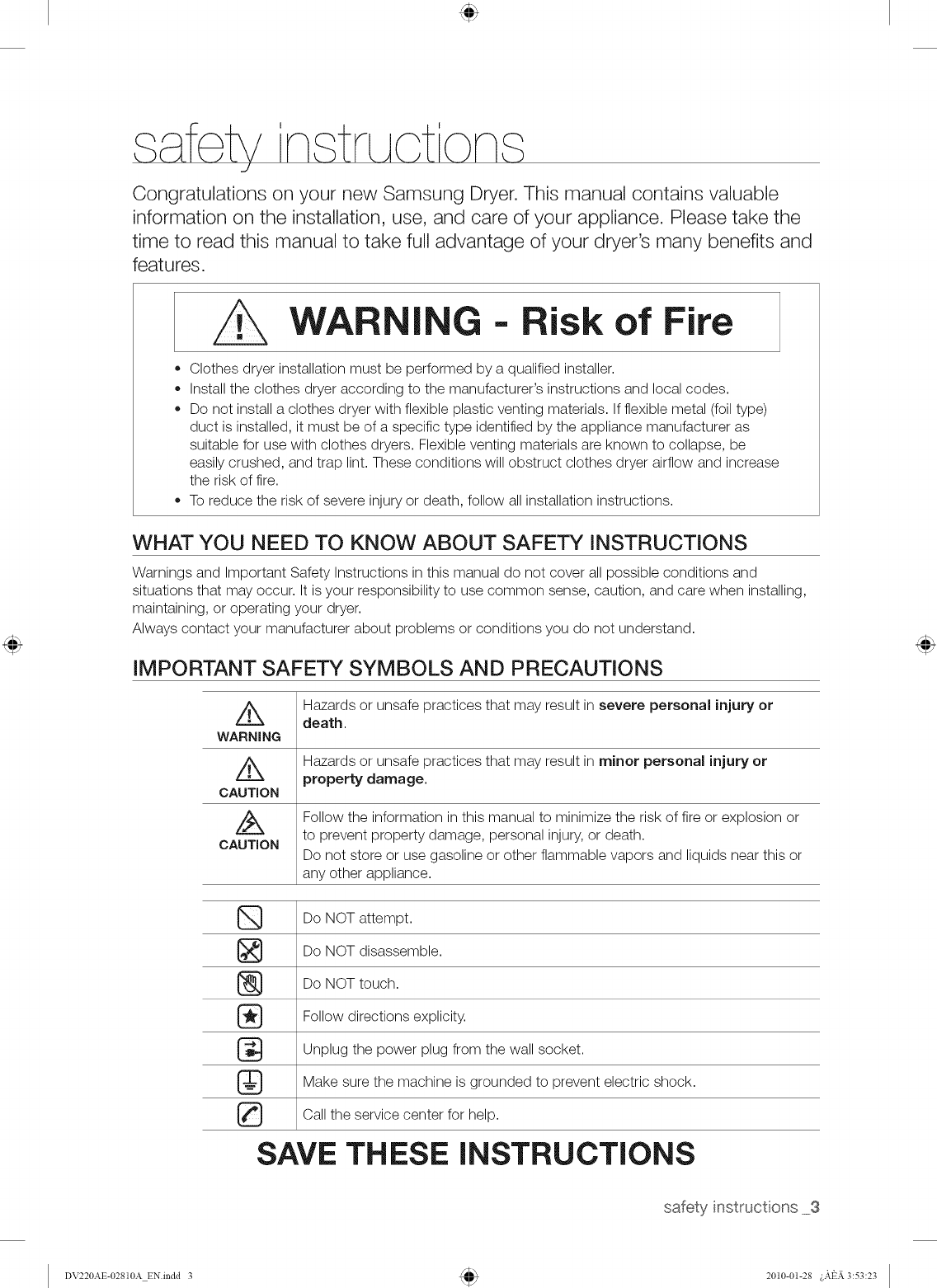 Congratulations on your new Samsung Dryer. This manual contains valuable