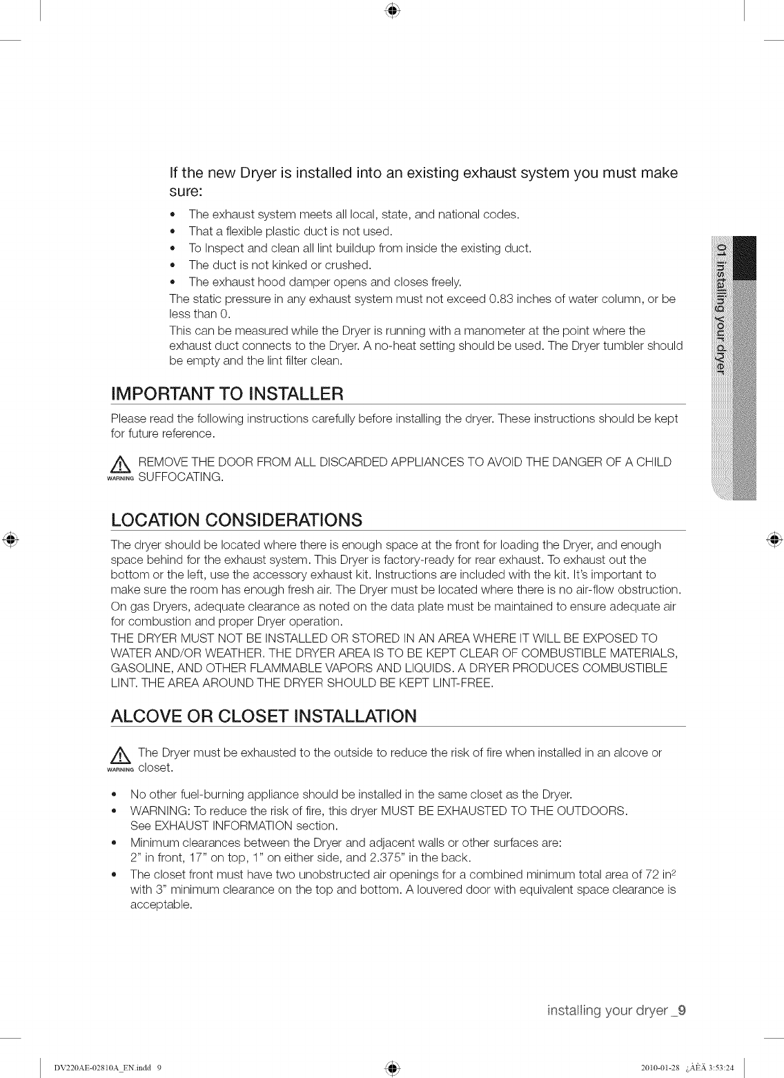 SAMSUNG Residential Dryer Manual L1004286 SAMSUNG Residential Dryer Owner's Manual, SAMSUNG Residential Dryer installation guides