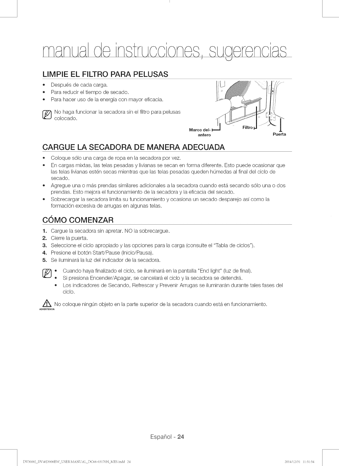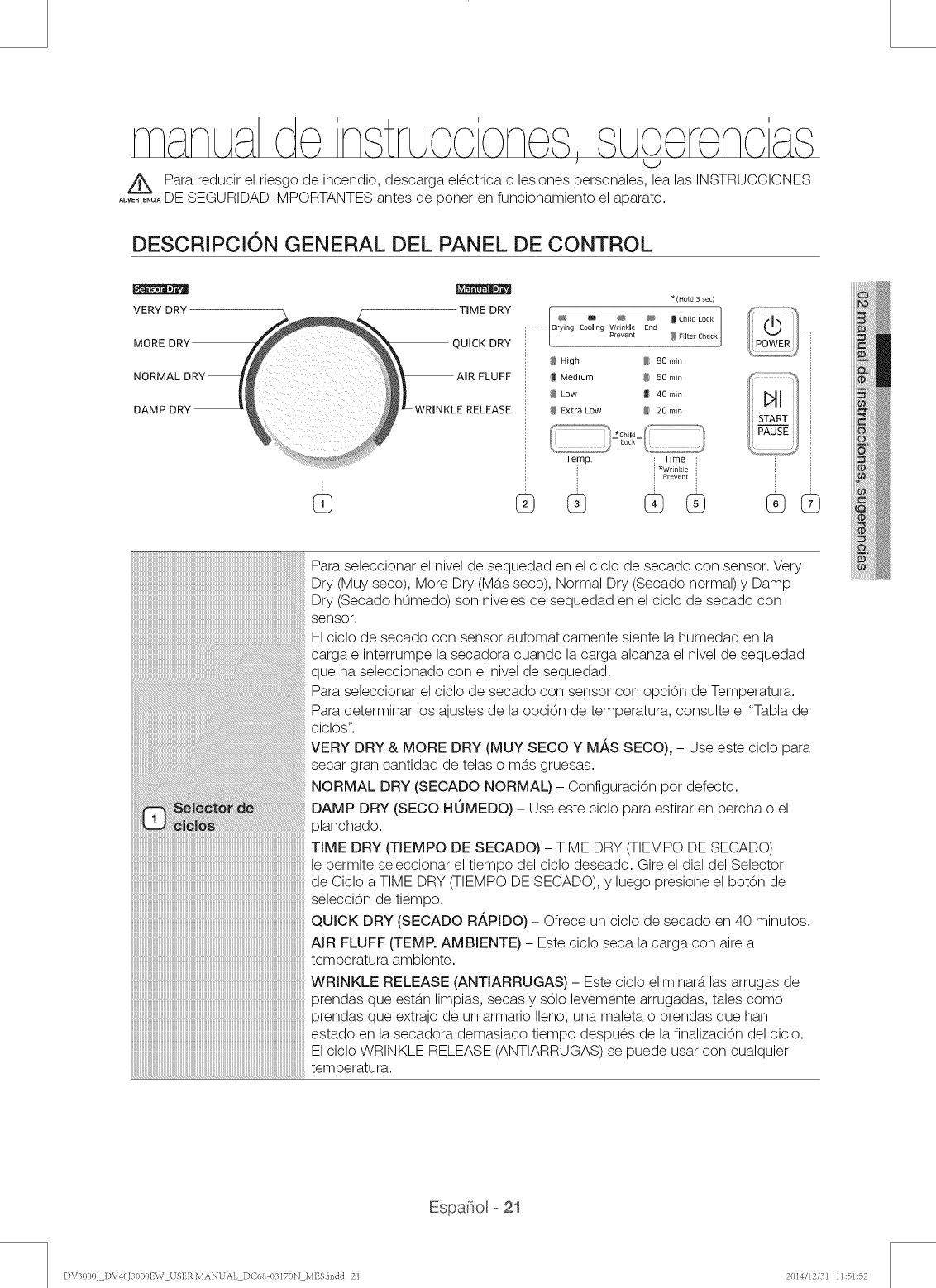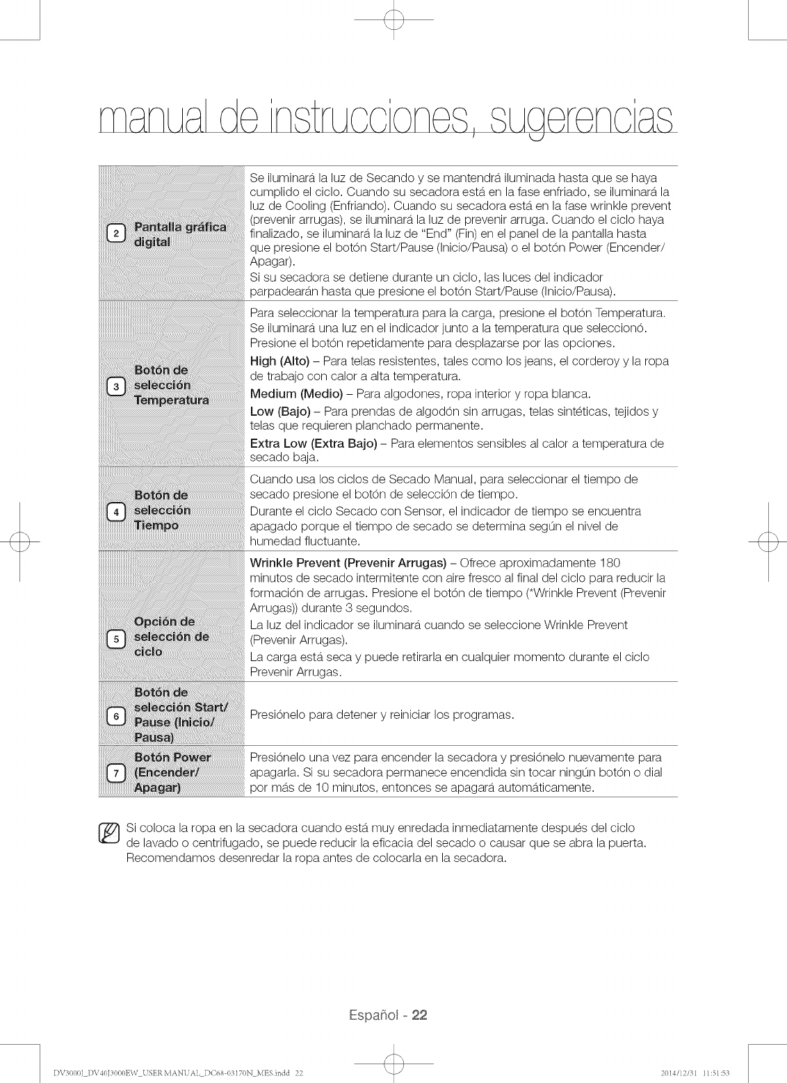 Samsung DV40J3000EW/A2 0000 User Manual DRYER Manuals And Guides 1504332L