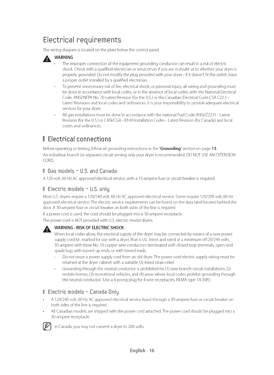 Electrical requirements .............................................................................. 16