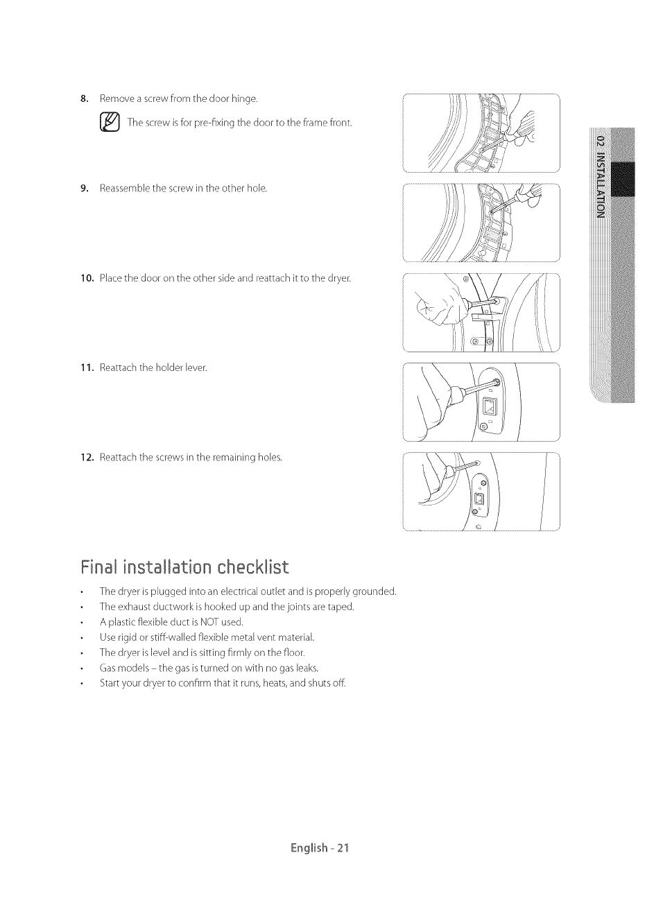 Final installation checklist ............................................................................ 21