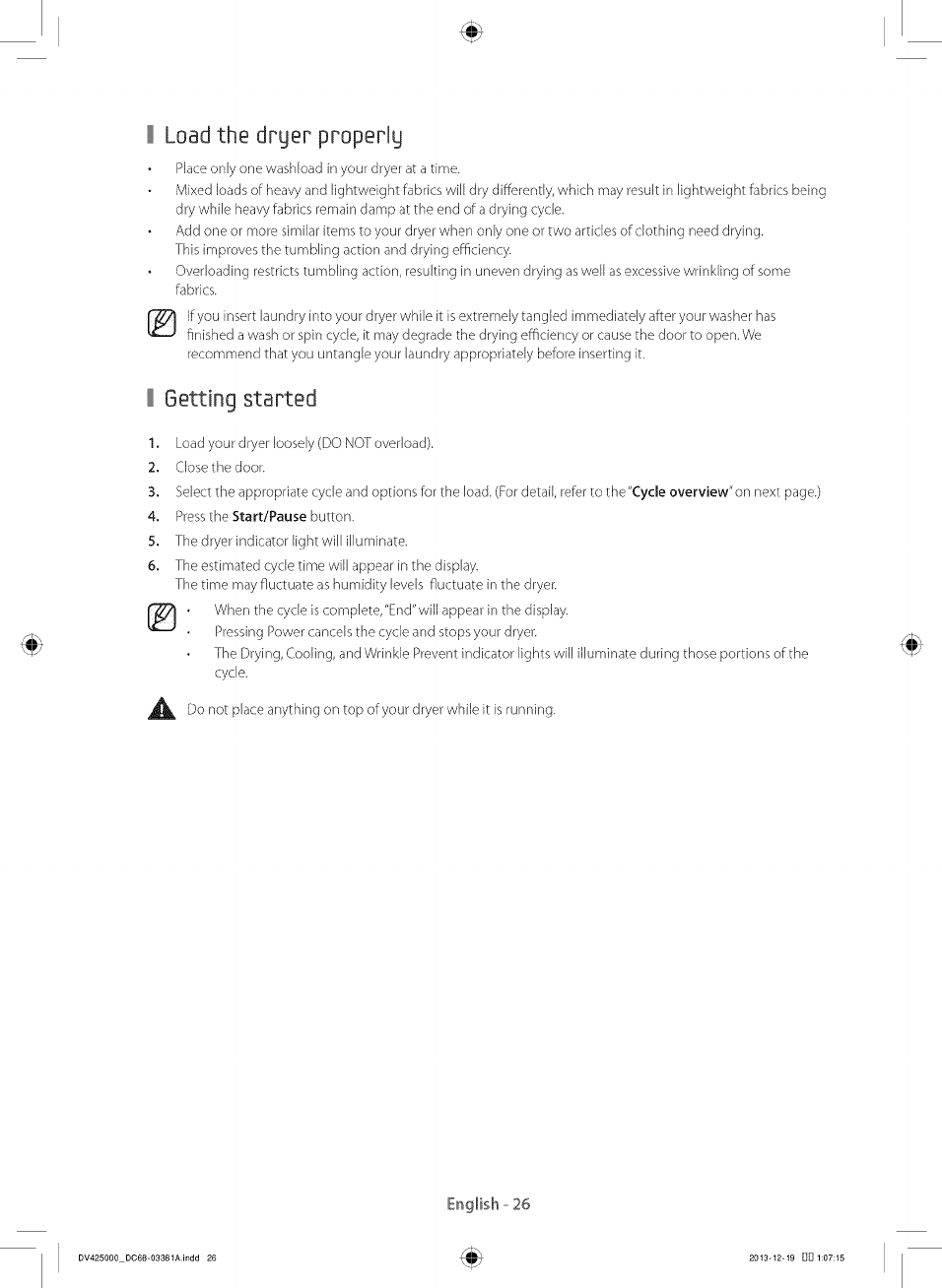 Load the dryer properly ............................................................................... 26
