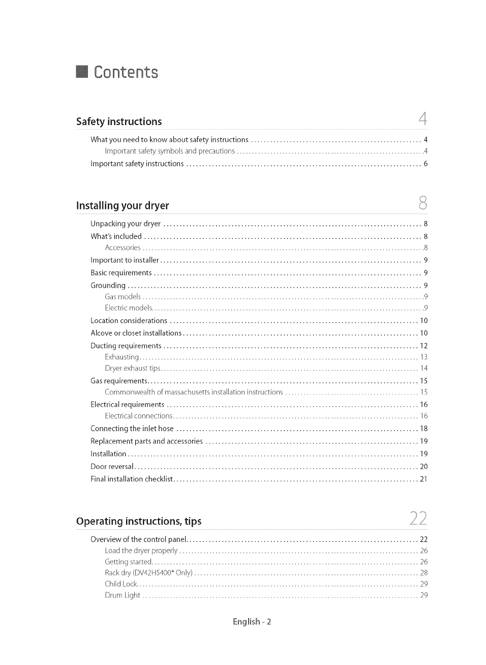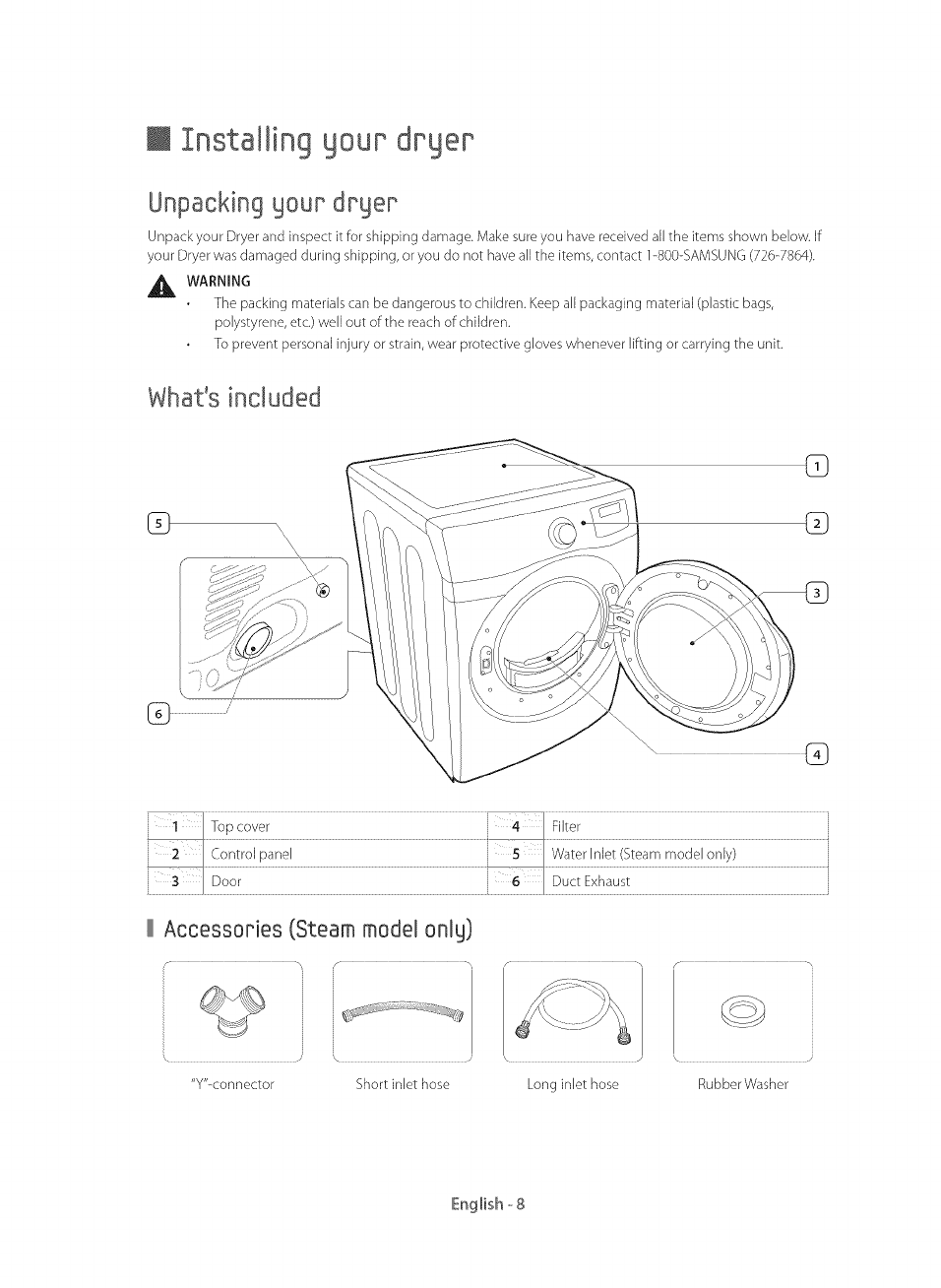 Unpacking your dryer ................................................................................ 8