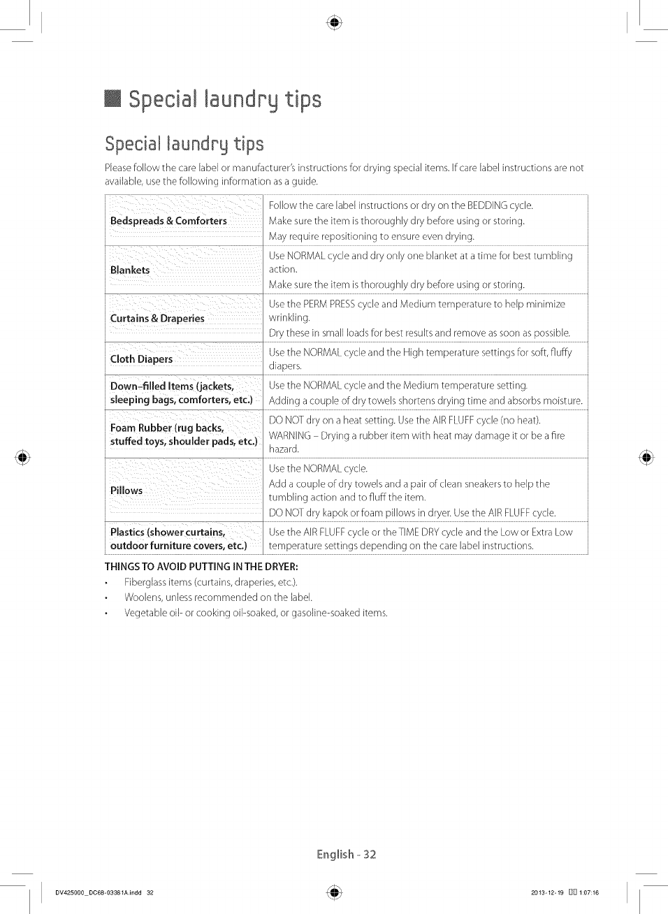 Special laundry tips .................................................................................. 32