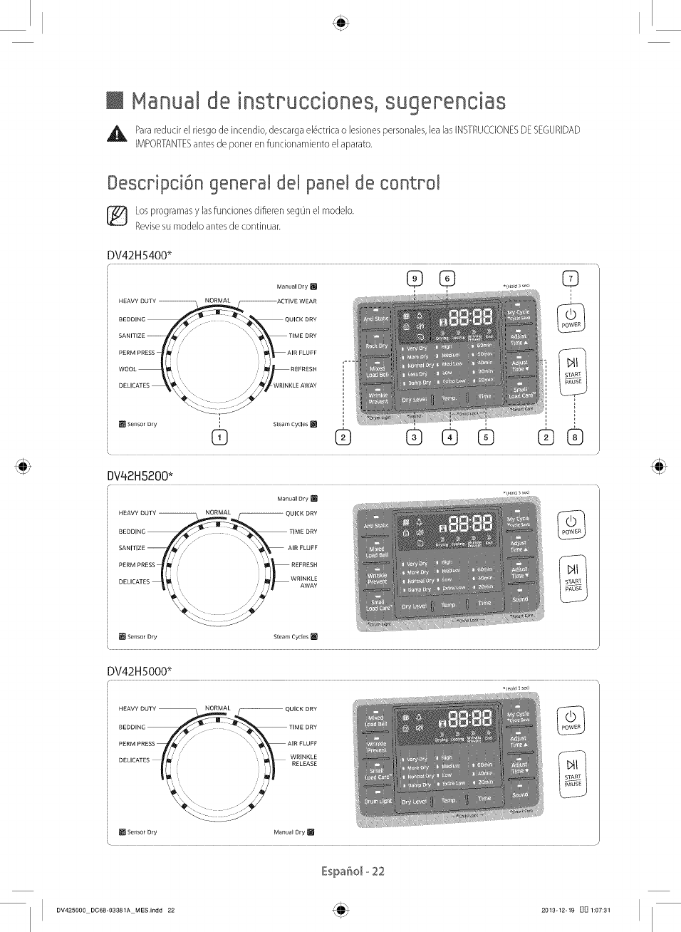 Samsung DV42H5000EW/A3 0000 User Manual DRYER Manuals And Guides 1406105L