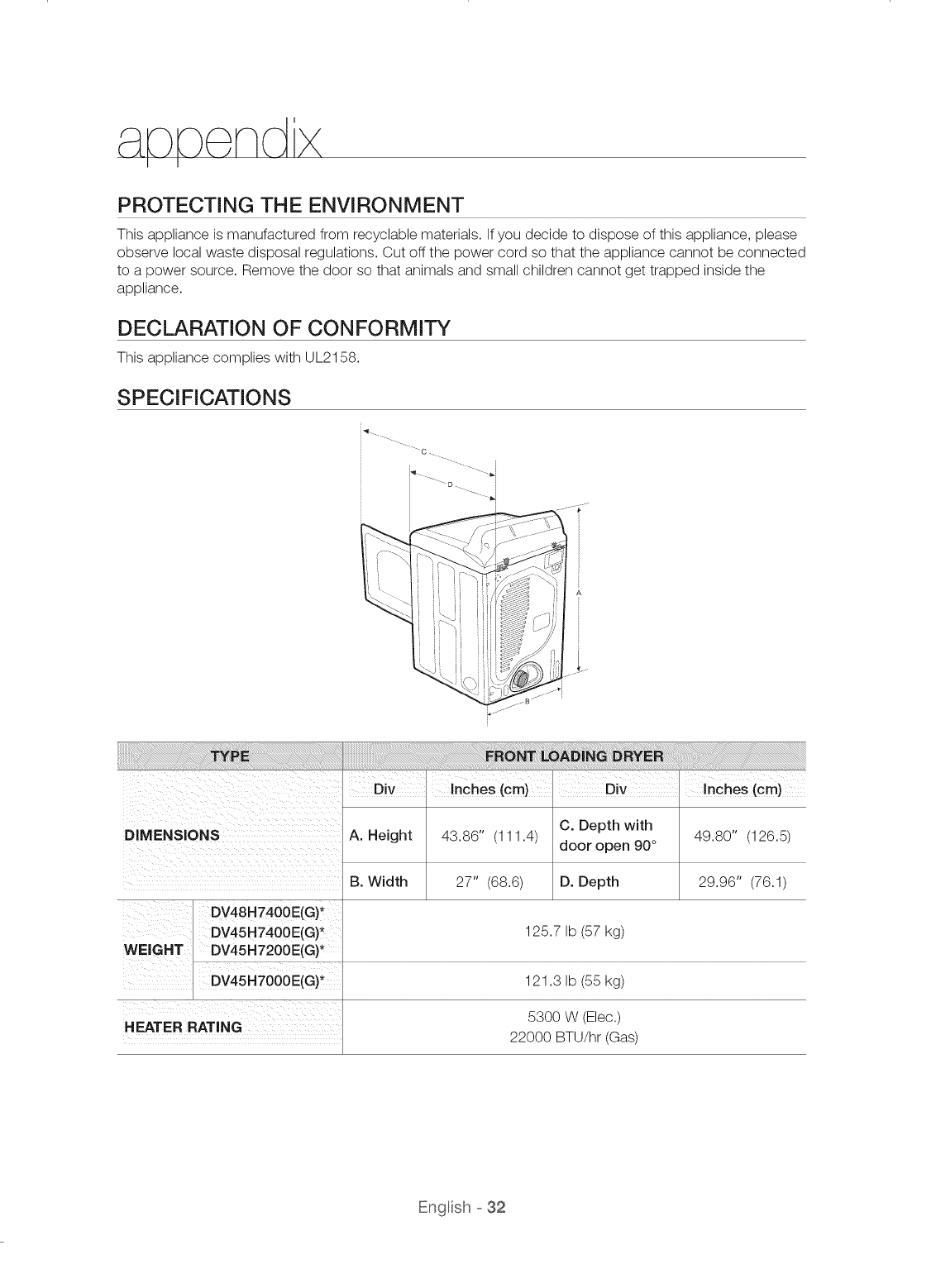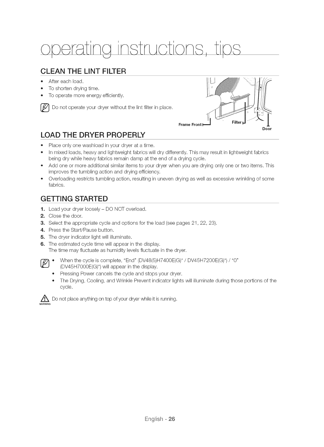 Samsung DV45H7000EW/A2 0000 User Manual DRYER Manuals And Guides 1409190L