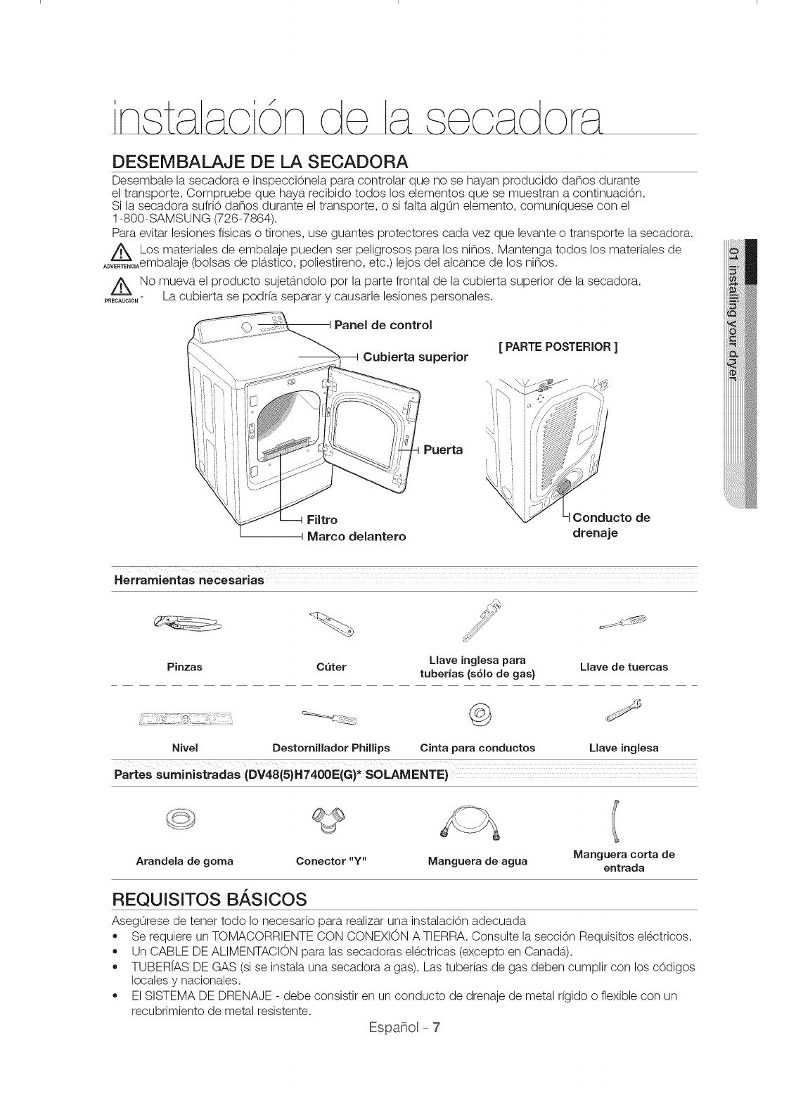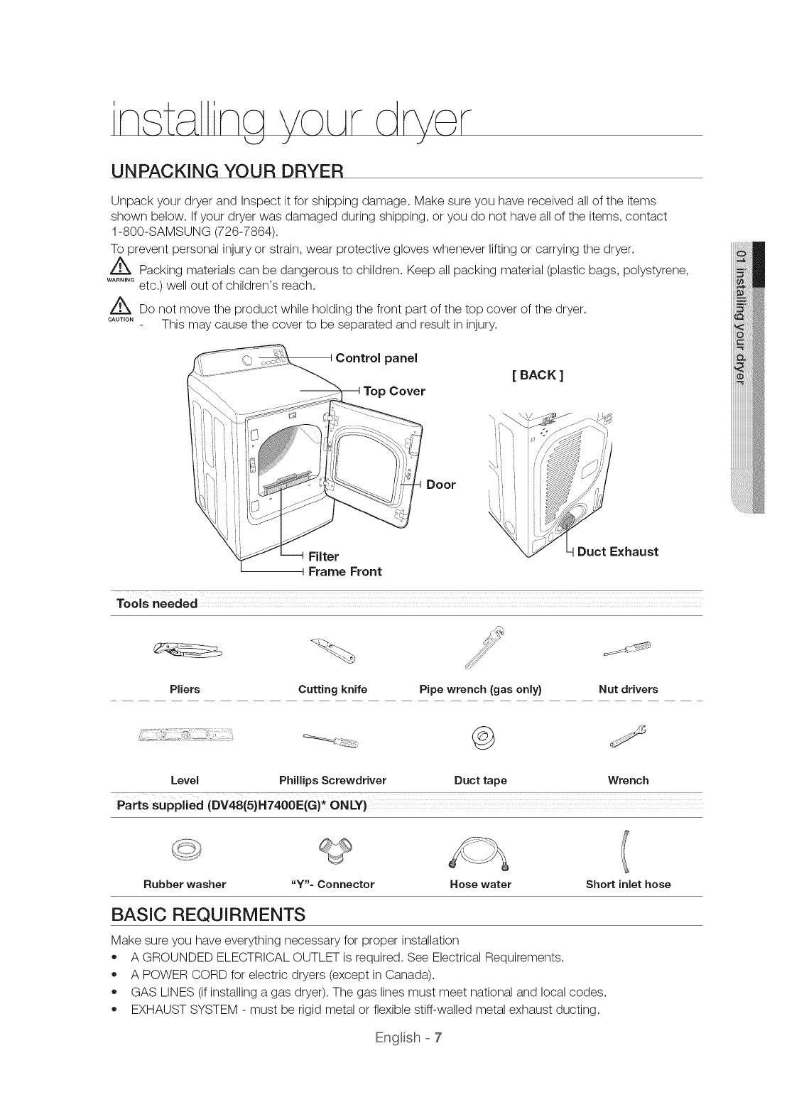 INSTALLING YOUR DRYER 7 Unpacking your dryer
