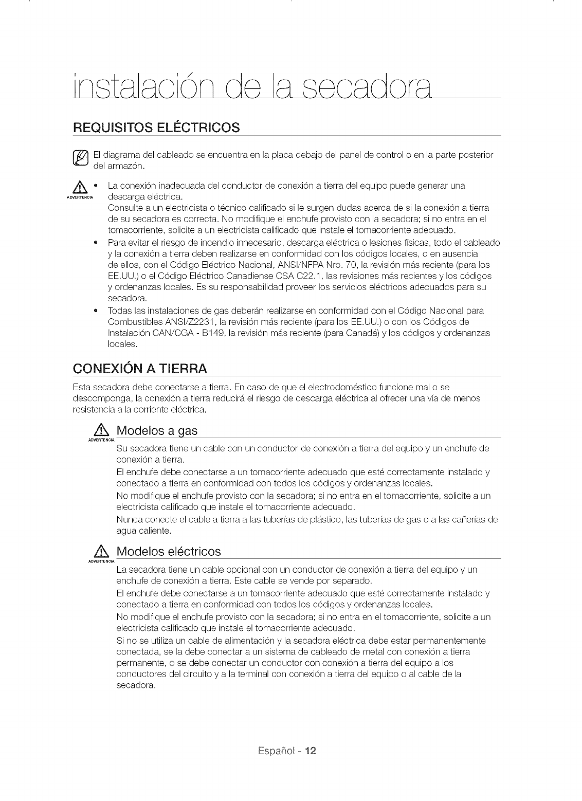mantenimiento o la instalacion no est&.ncubiertas pot la garant(a.