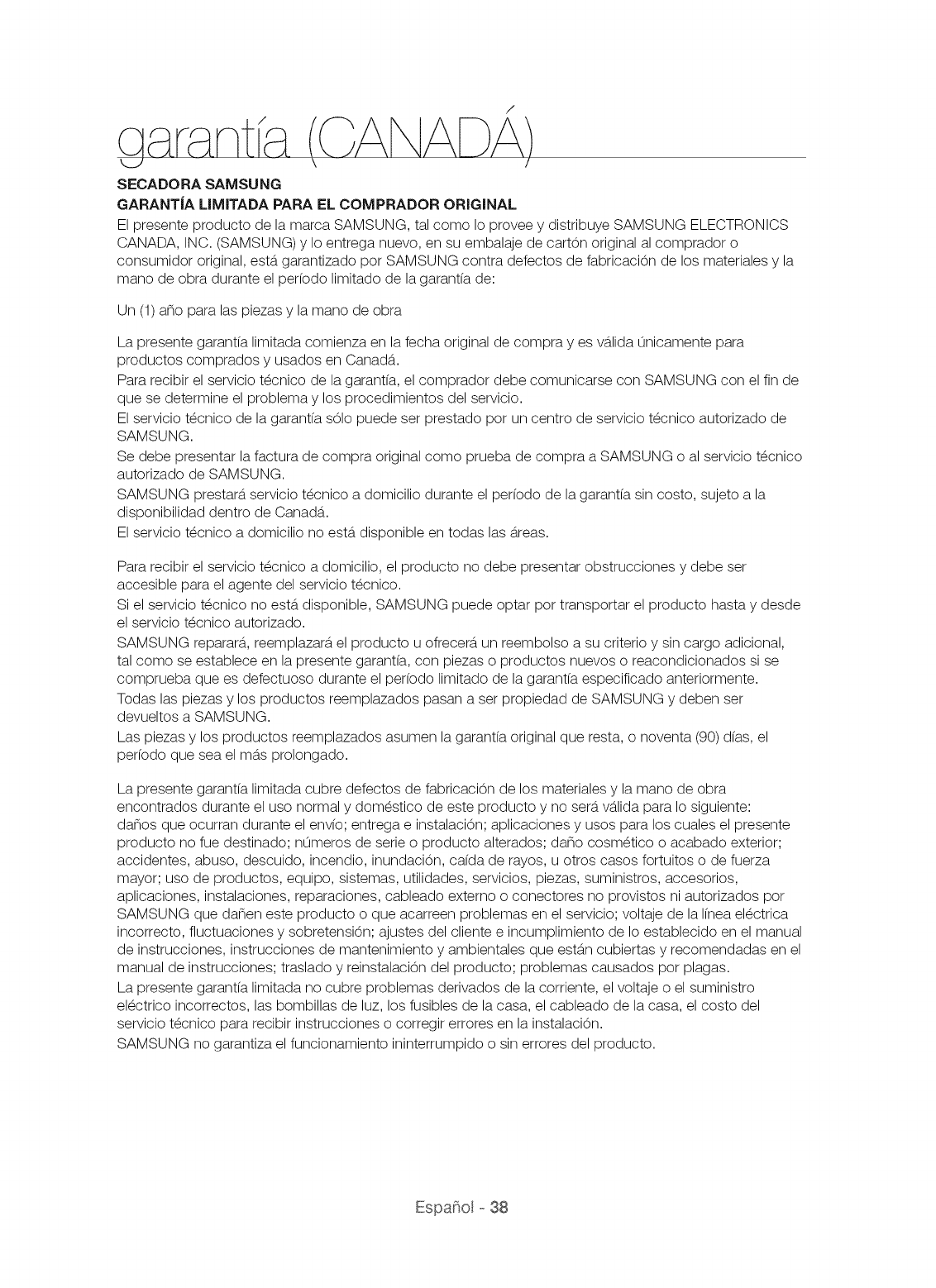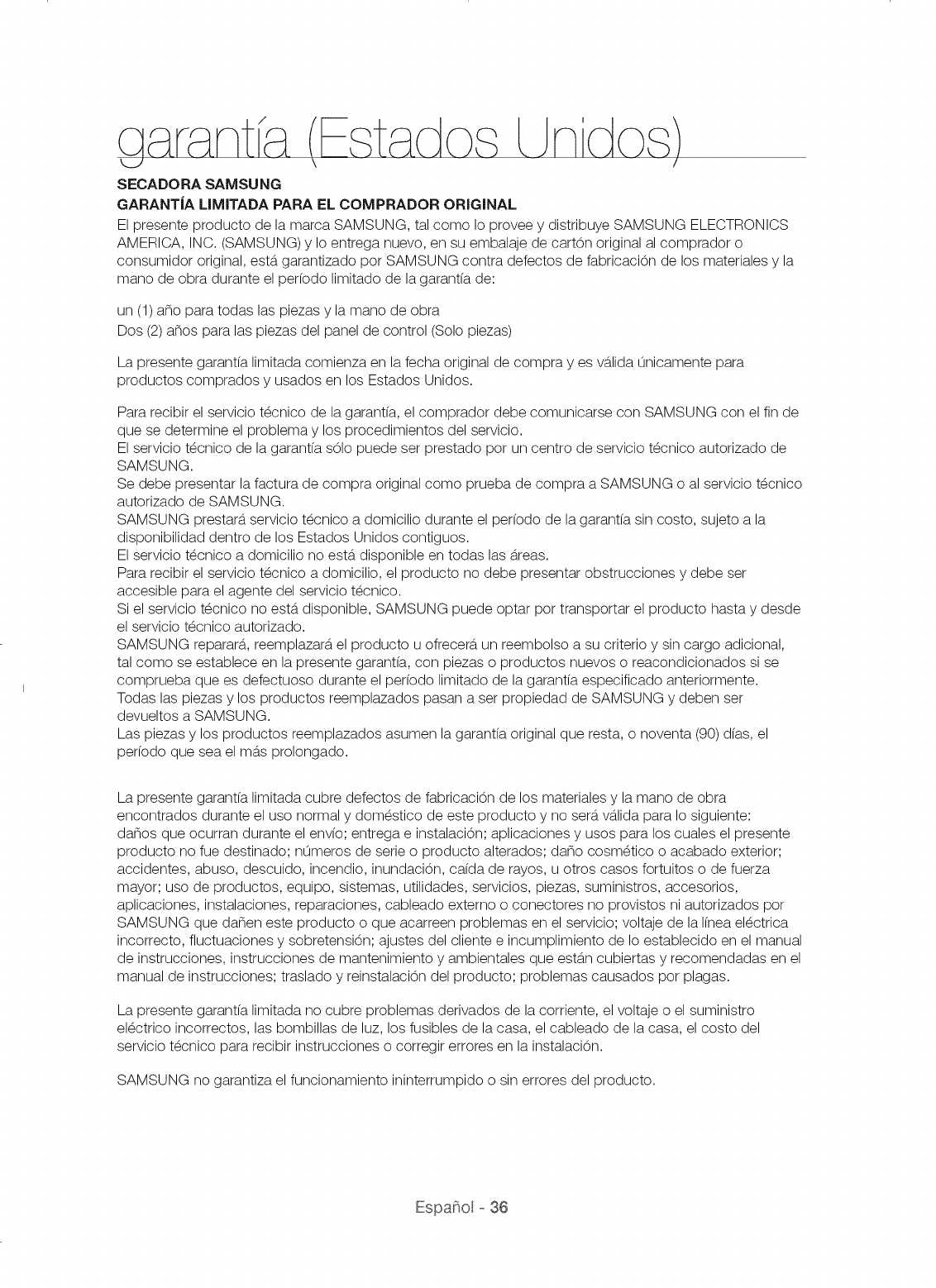 consumidor original, est&.garantizado pot SAMSUNG contra defectos de fabricacion de los materiales y la