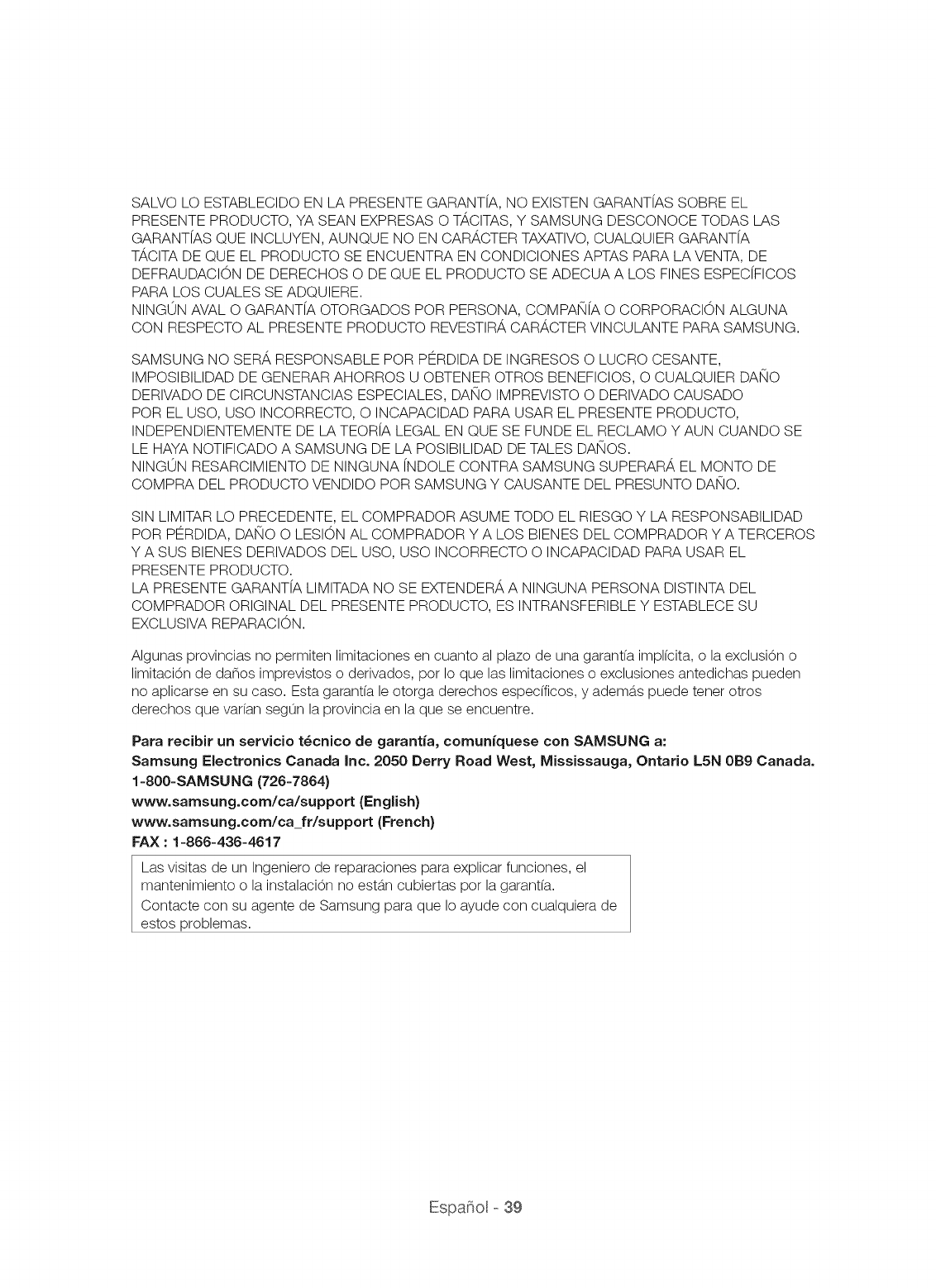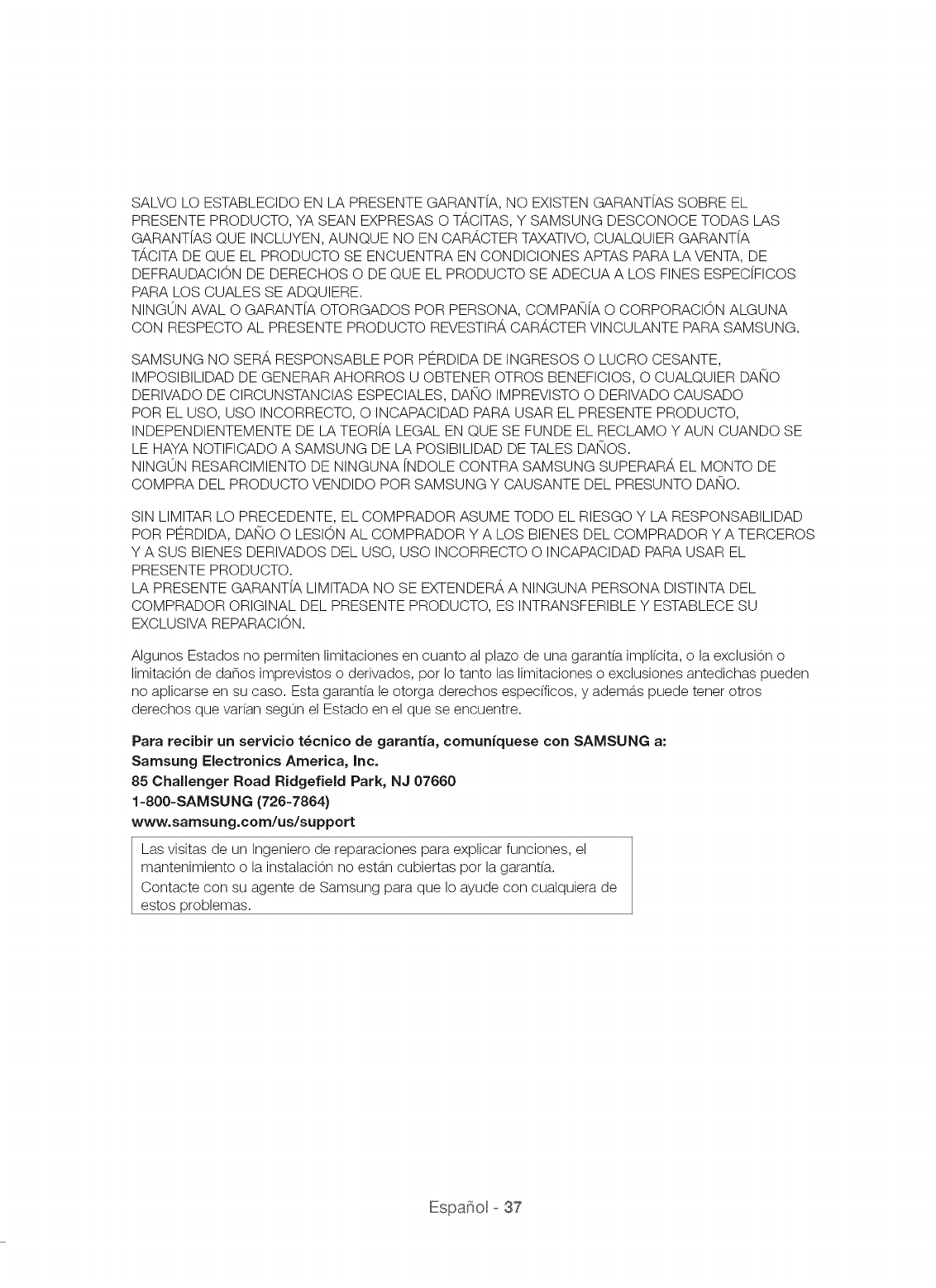 Para recibir un servicio t_cnico de garantia, comuniquese con SAMSUNG a: