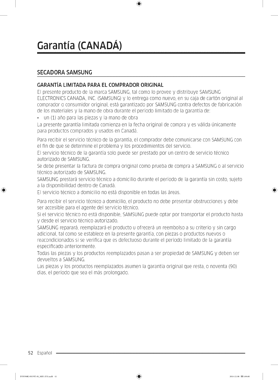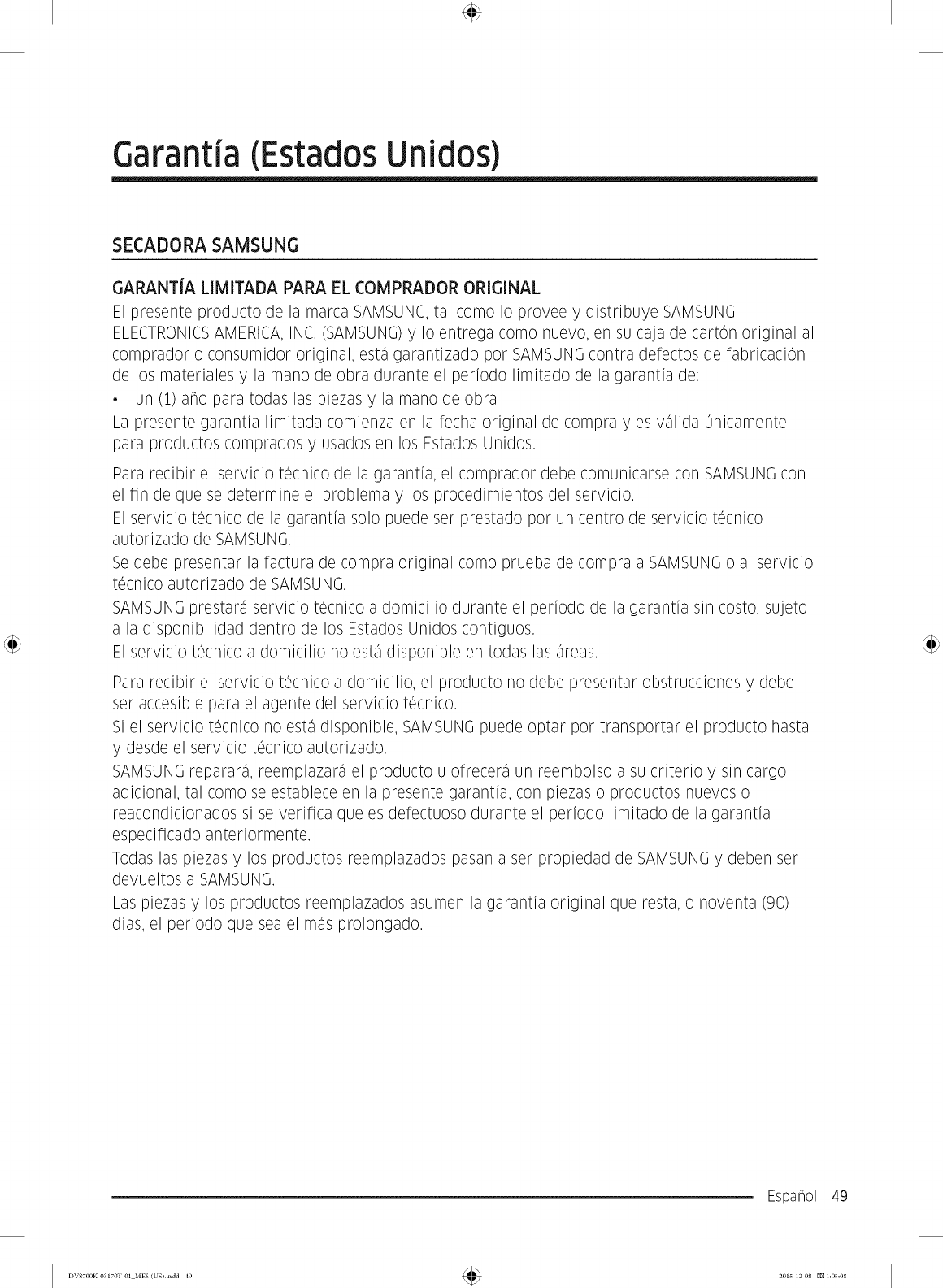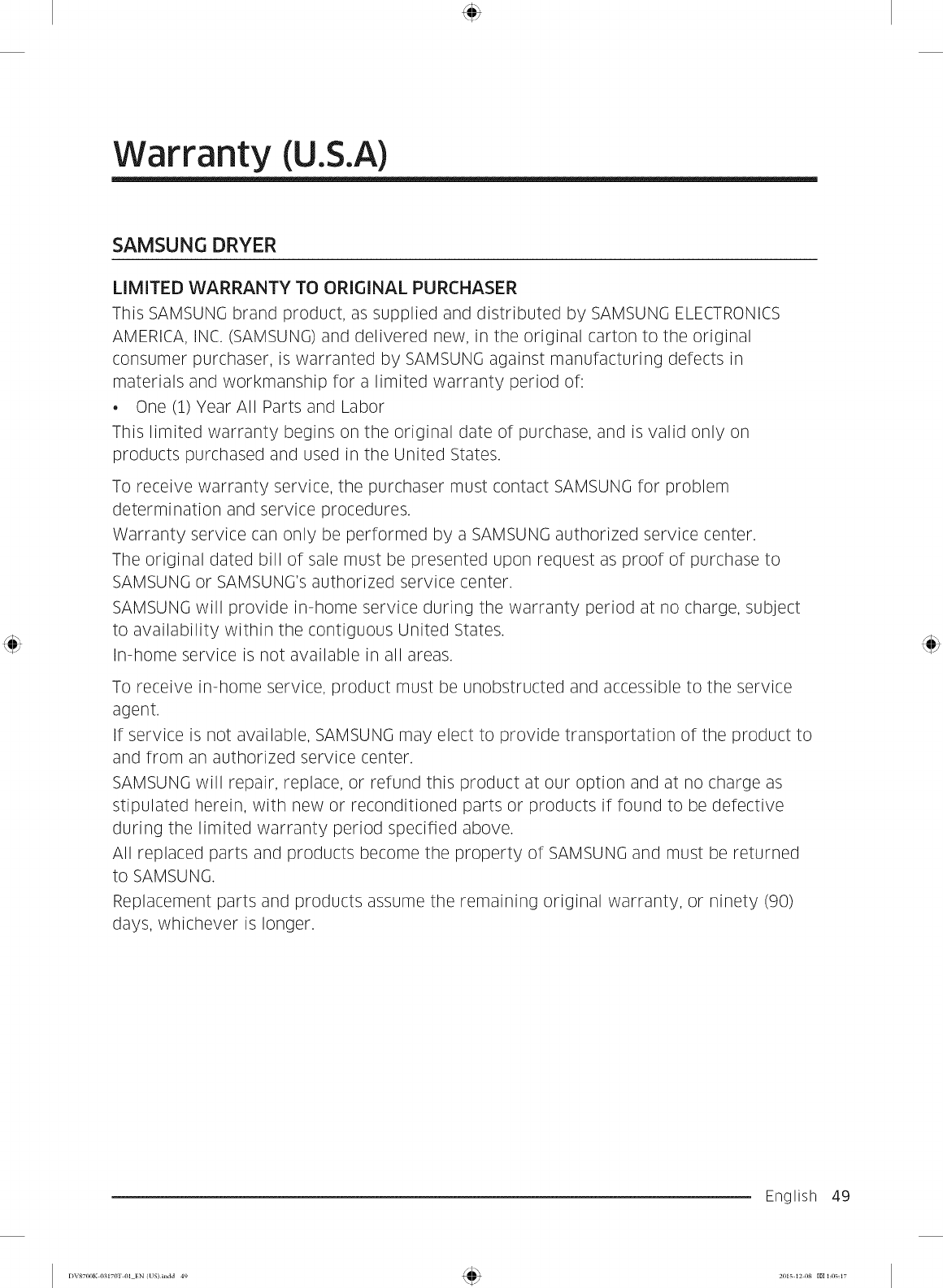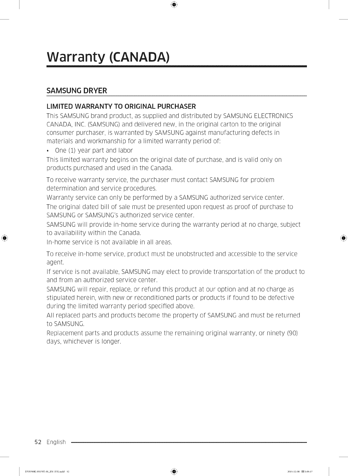 Samsung DV50K8600EV/A3 0000 1604175L User Manual DRYER Manuals And Guides
