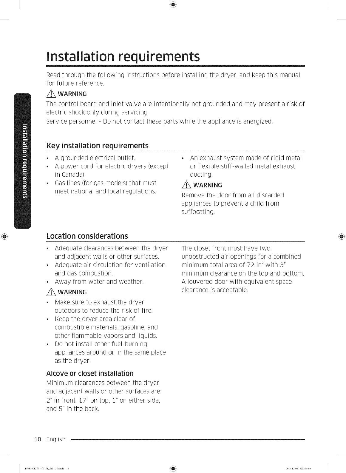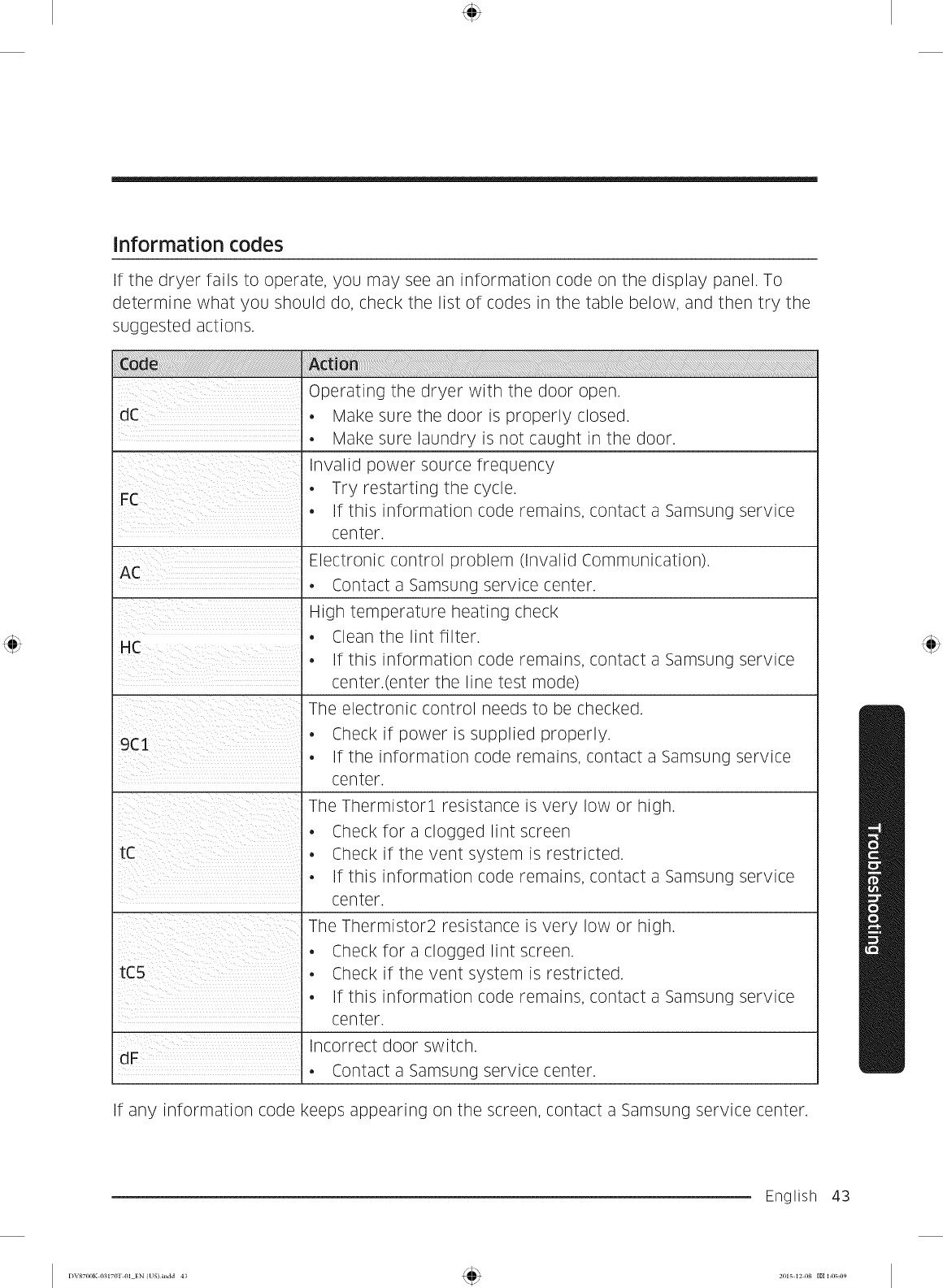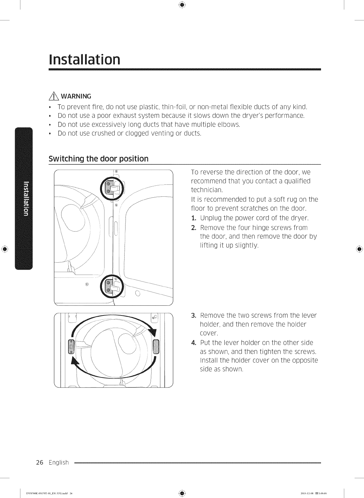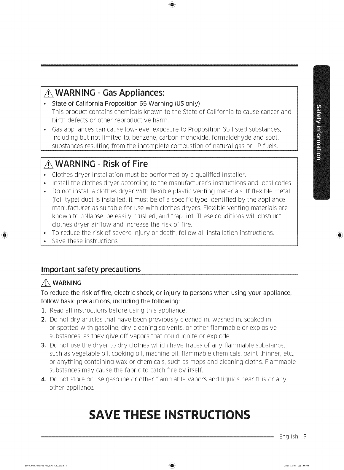 Samsung DV50K8600EV/A3 0000 1604175L User Manual DRYER Manuals And Guides