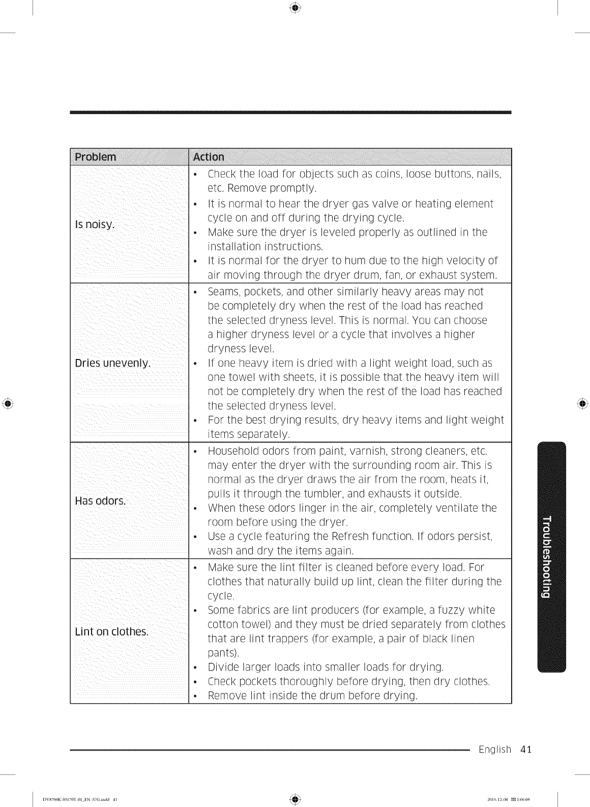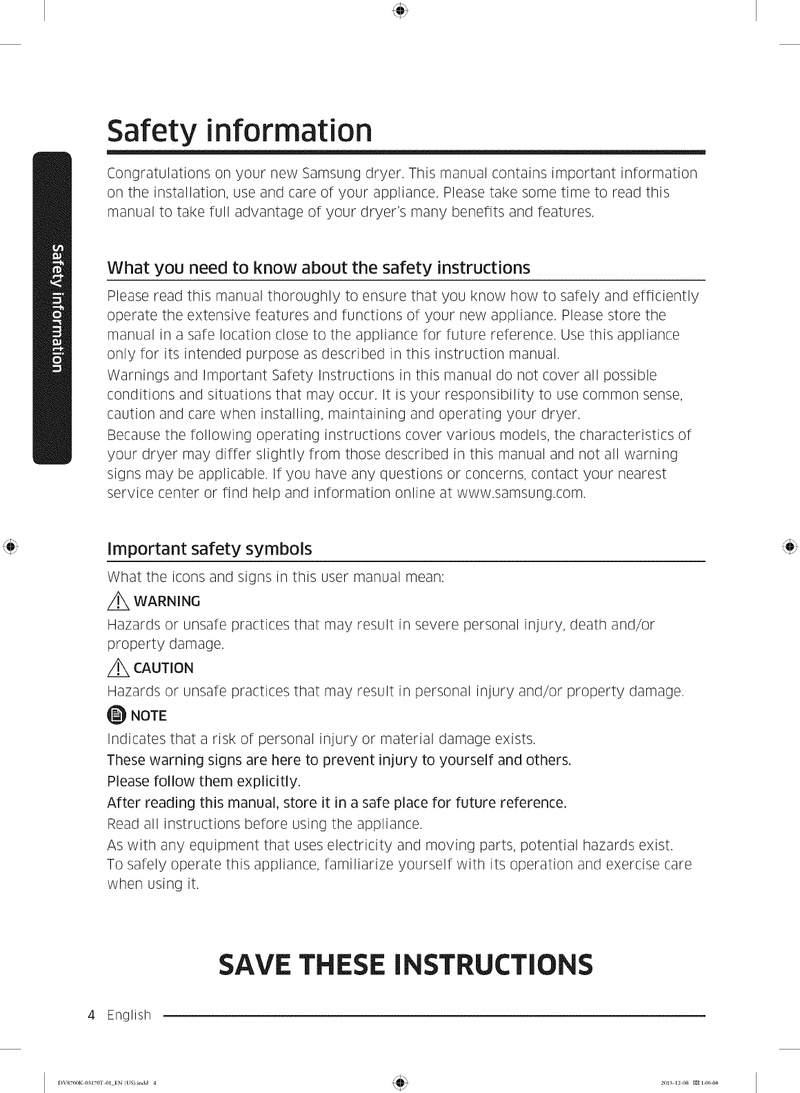 User Manual: Samsung DV50K8600EV/A3-0000 DV50K8600EV/A3-0000 SAMSUNG DRYER - Manuals and Guides View the owners manual for your SAMSUNG DRYER #DV50K8600EVA30000. Home:Laundry & Garment Care Parts:Samsung Parts:Samsung DRYER Manual