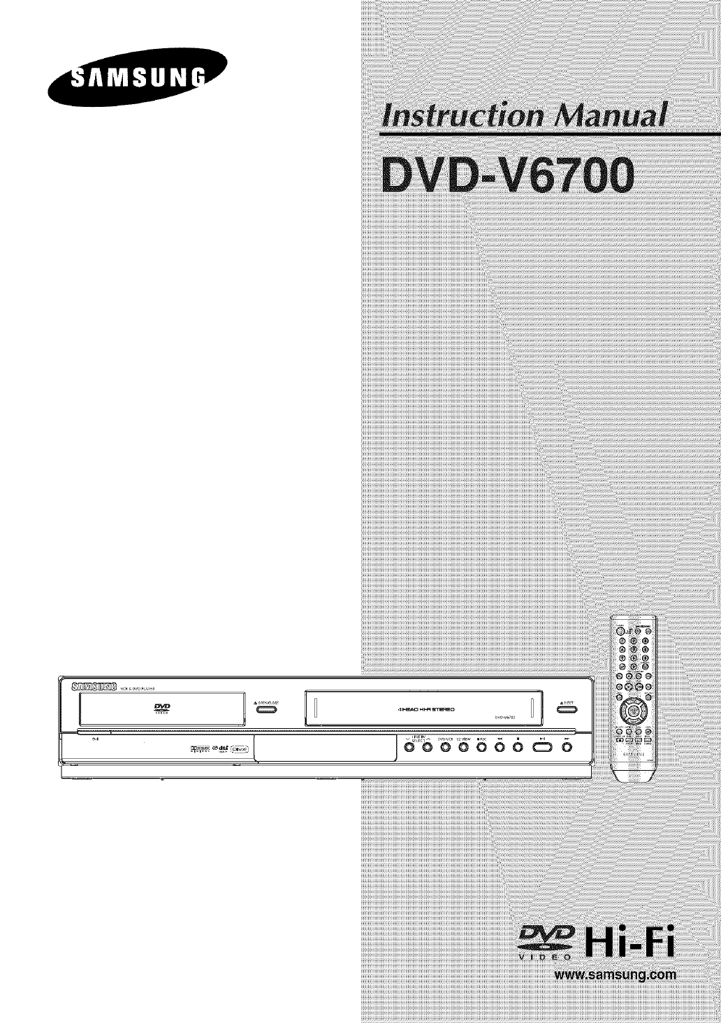User Manual: Samsung DVD-V6700 DVD-V6700 SAMSUNG DVD/VCR - Manuals and Guides View the owners manual for your SAMSUNG DVD/VCR #DVDV6700. Home:Electronics Parts:Samsung Parts:Samsung DVD/VCR Manual