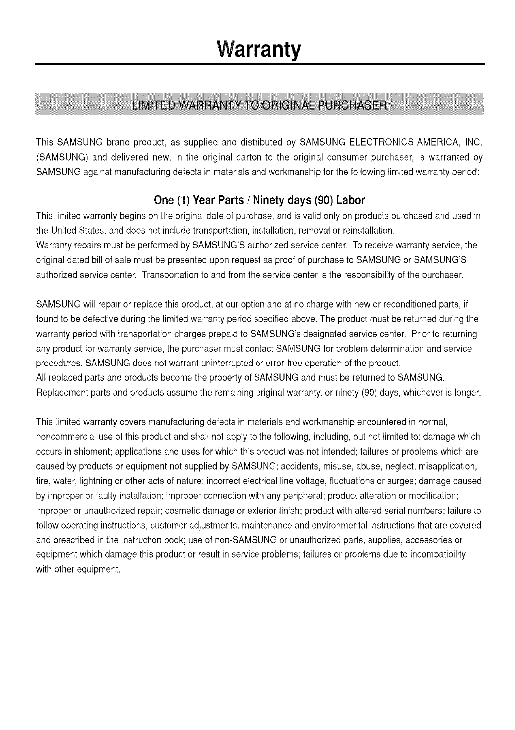 Warranty repairs must be performed by SAMSUNG'S authorized service center. To receivewarranty service, the