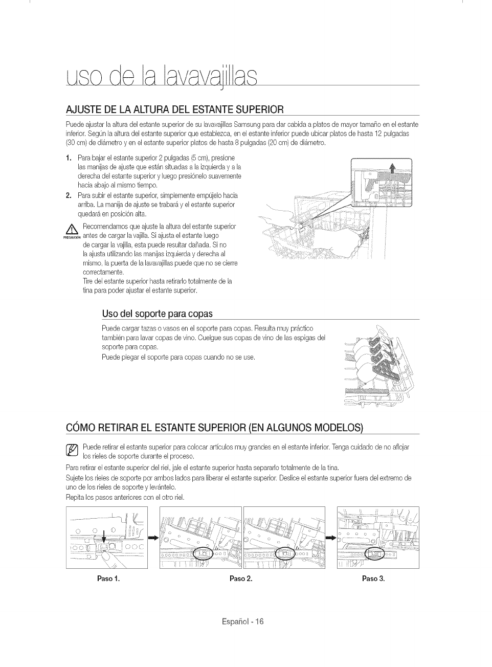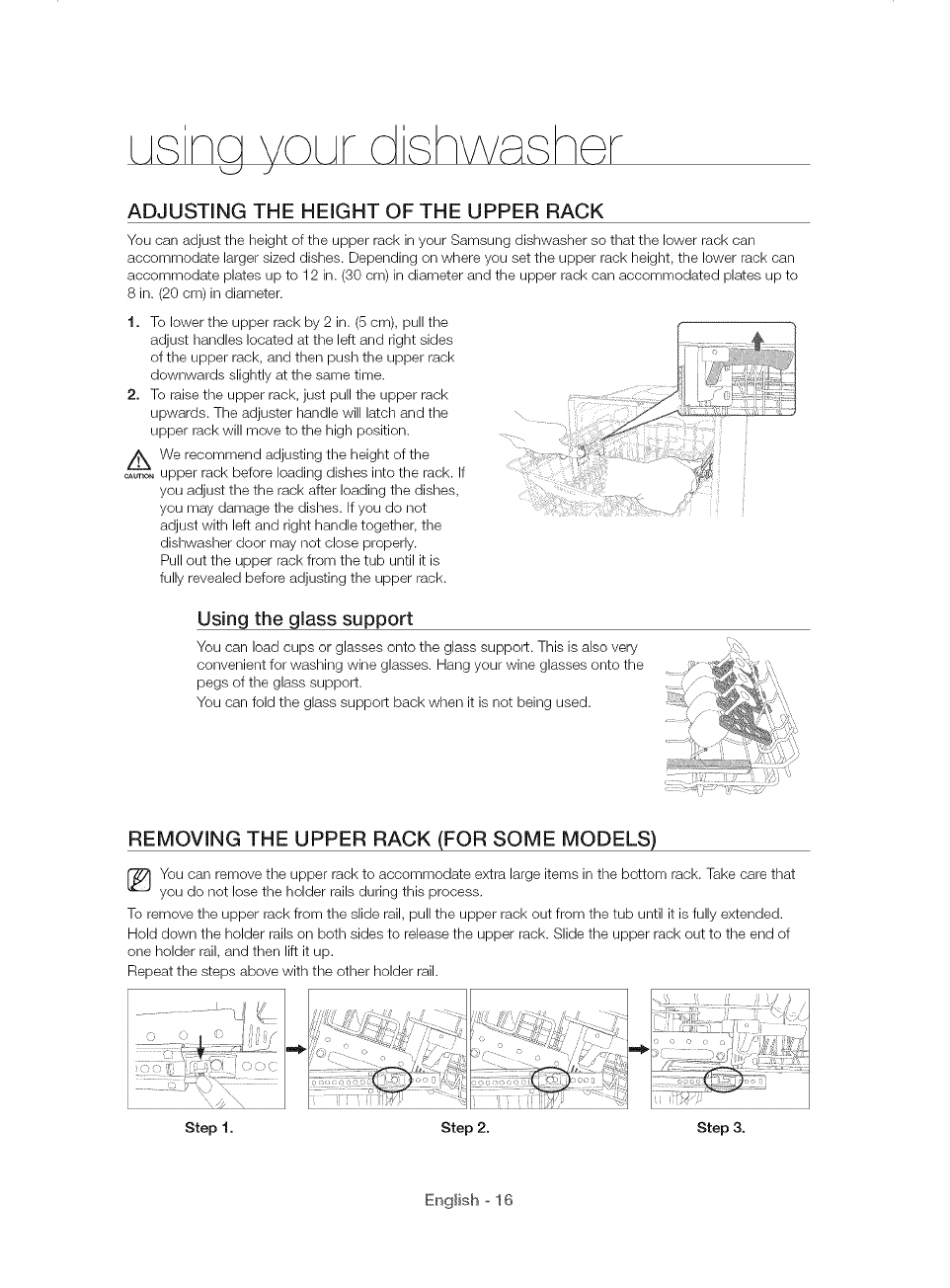 16 Removing the upper rack (for some models)