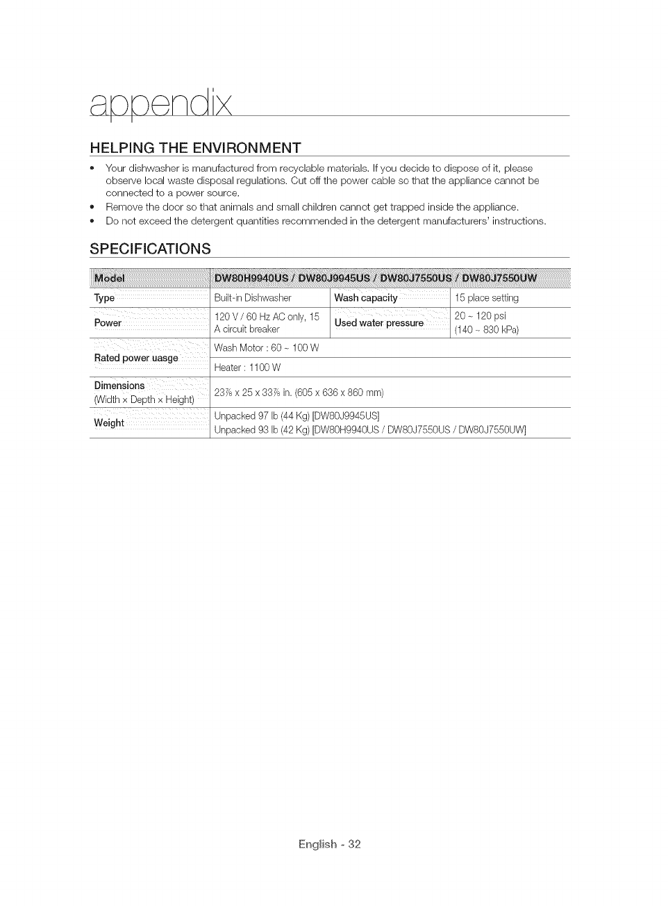 User Manual: Samsung DW80J7550UG/AA-0000 DW80J7550UG/AA-0000 SAMSUNG DISHWASHER - Manuals and Guides View the owners manual for your SAMSUNG DISHWASHER #DW80J7550UGAA0000. Home:Kitchen Appliance Parts:Samsung Parts:Samsung DISHWASHER Manual