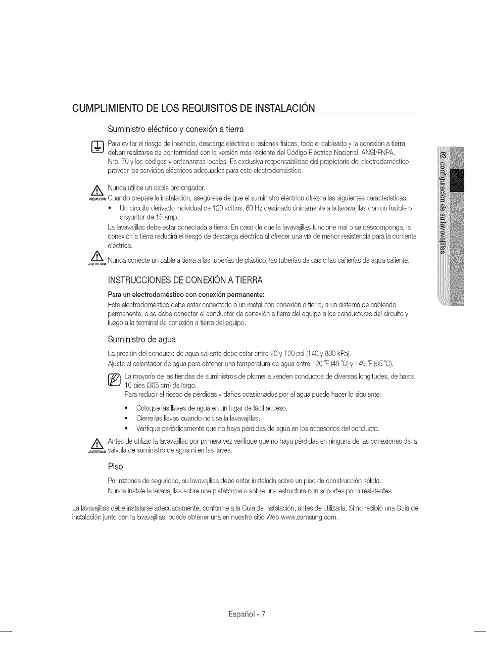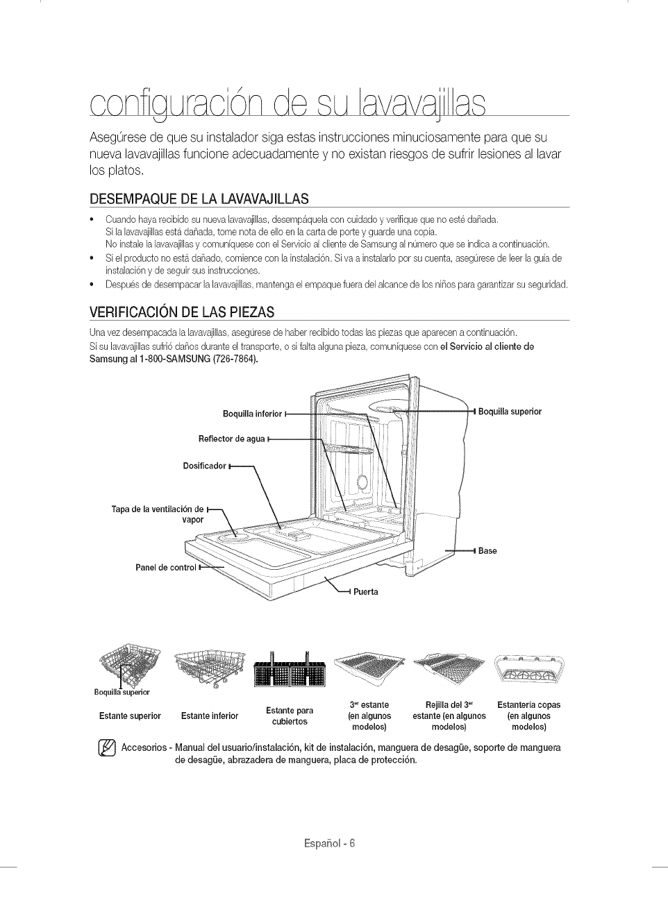 del servicio tecnico para recibir instrucciones o corregir errores en la instalaci6n. SAMSUNG no garantiza el funcionamiento
