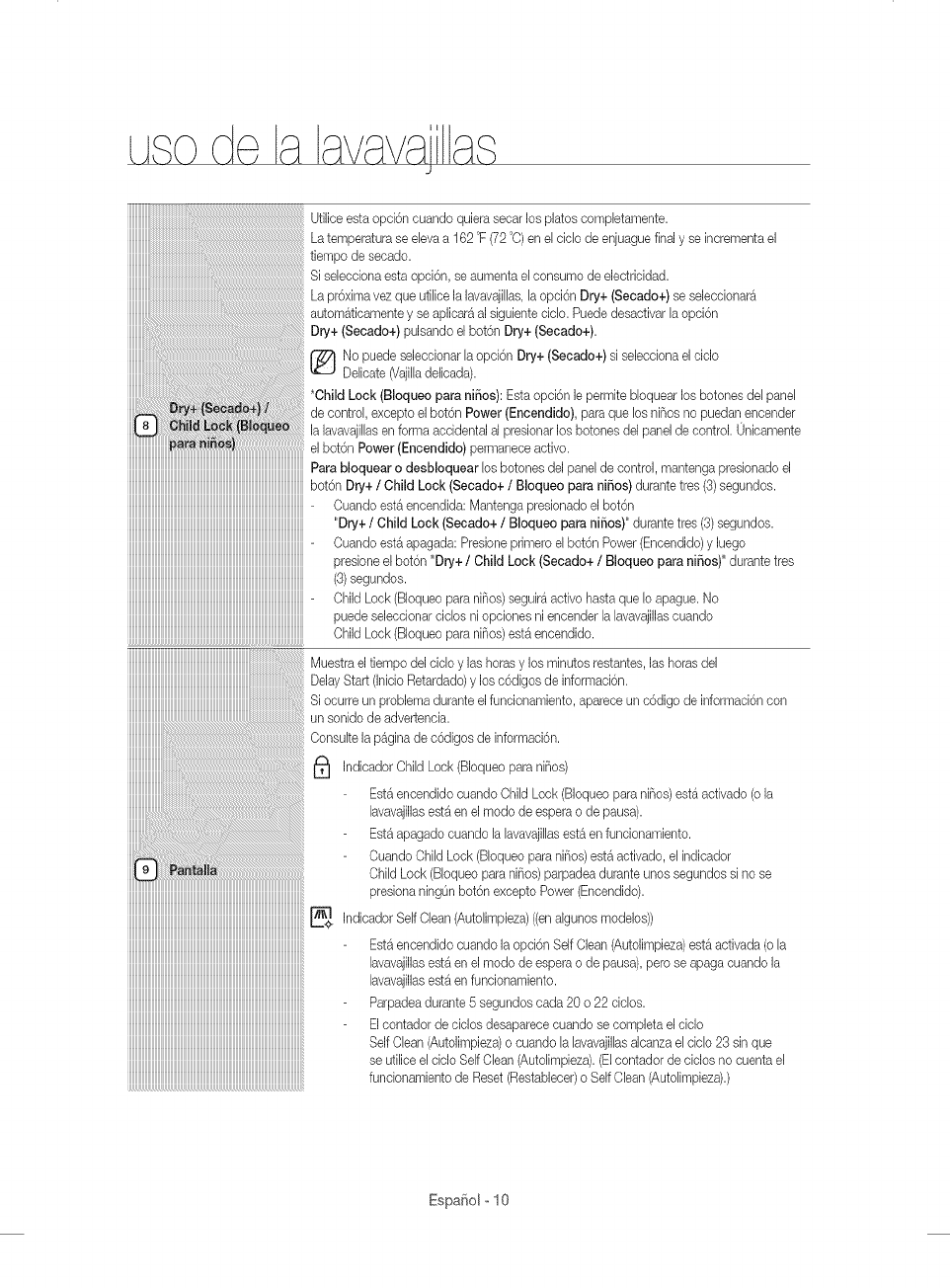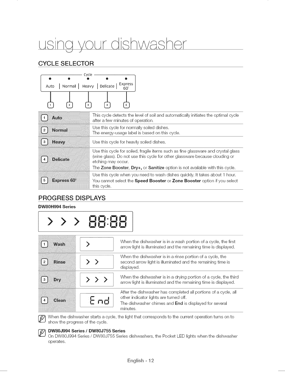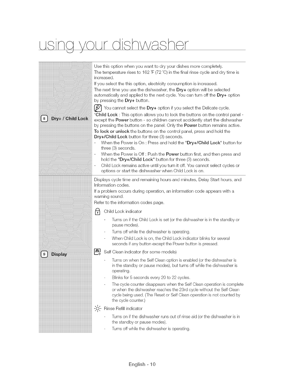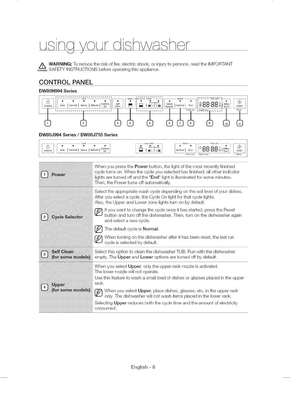 USING YOUR DISHWASHER 8 Control panel