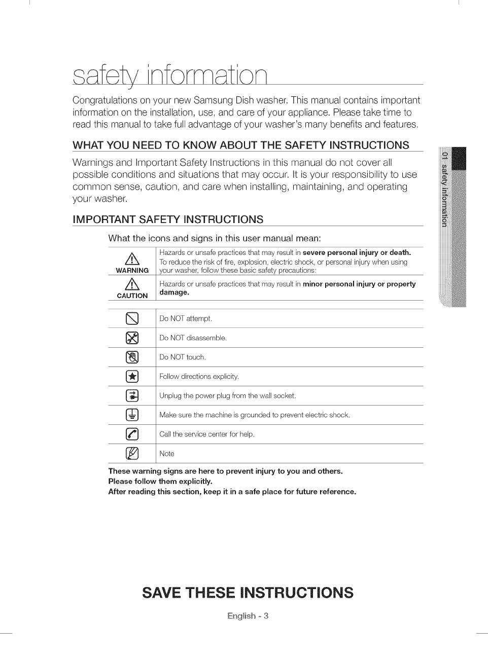 Congratulations on your new Samsung Dish washer. This manual contains important