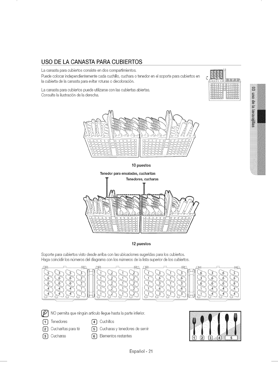 21 Using the cutlery basket