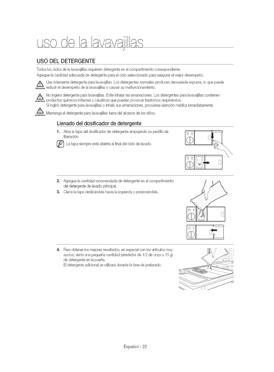 No ufilice canfidades de detergente superiores a las recomendadas por el fabricante del detergente.