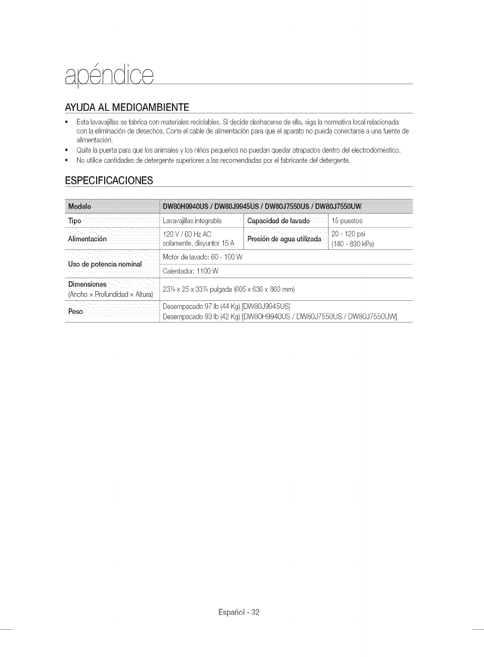 Desempacado 93 [b (42 Kg) [DW80H9940US /DWSOJ7550US /DW80J7550UW]