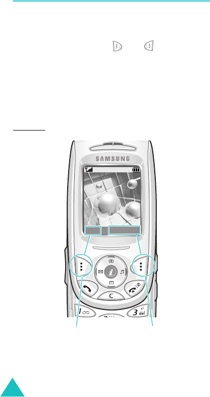 Each of the two soft keys ( and )