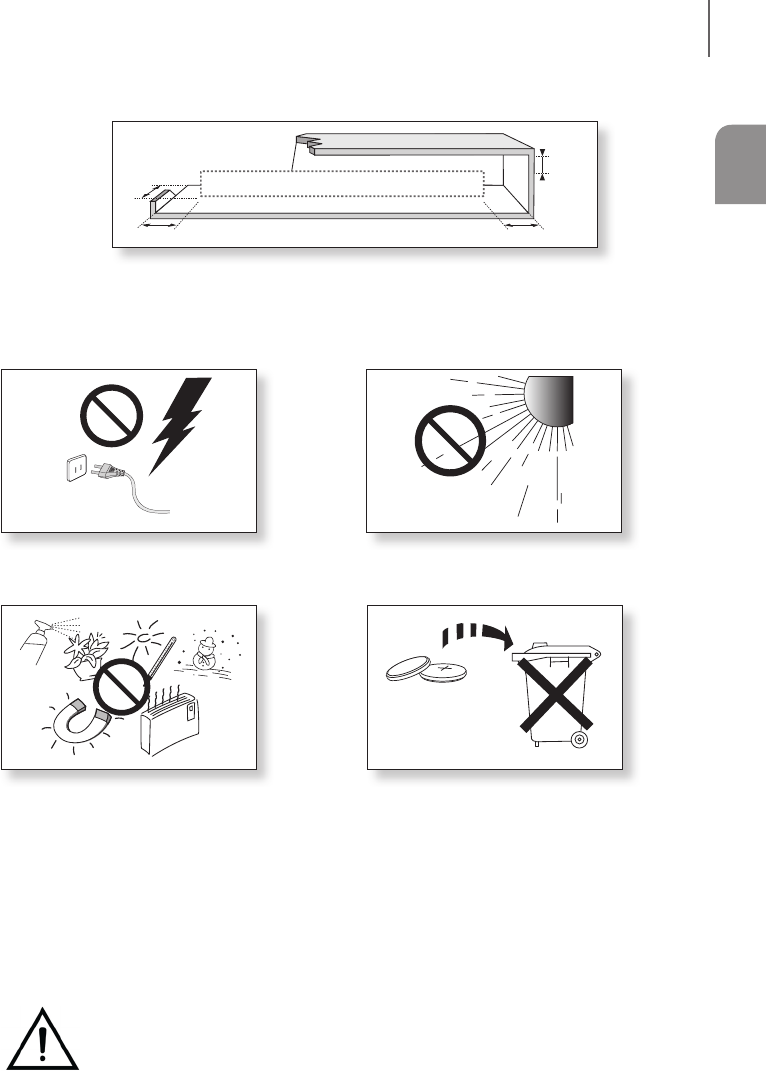 around it for ventilation (7~10 cm). Make sure the ventilation slots are not covered. Do not place the unit on amplifiers or
