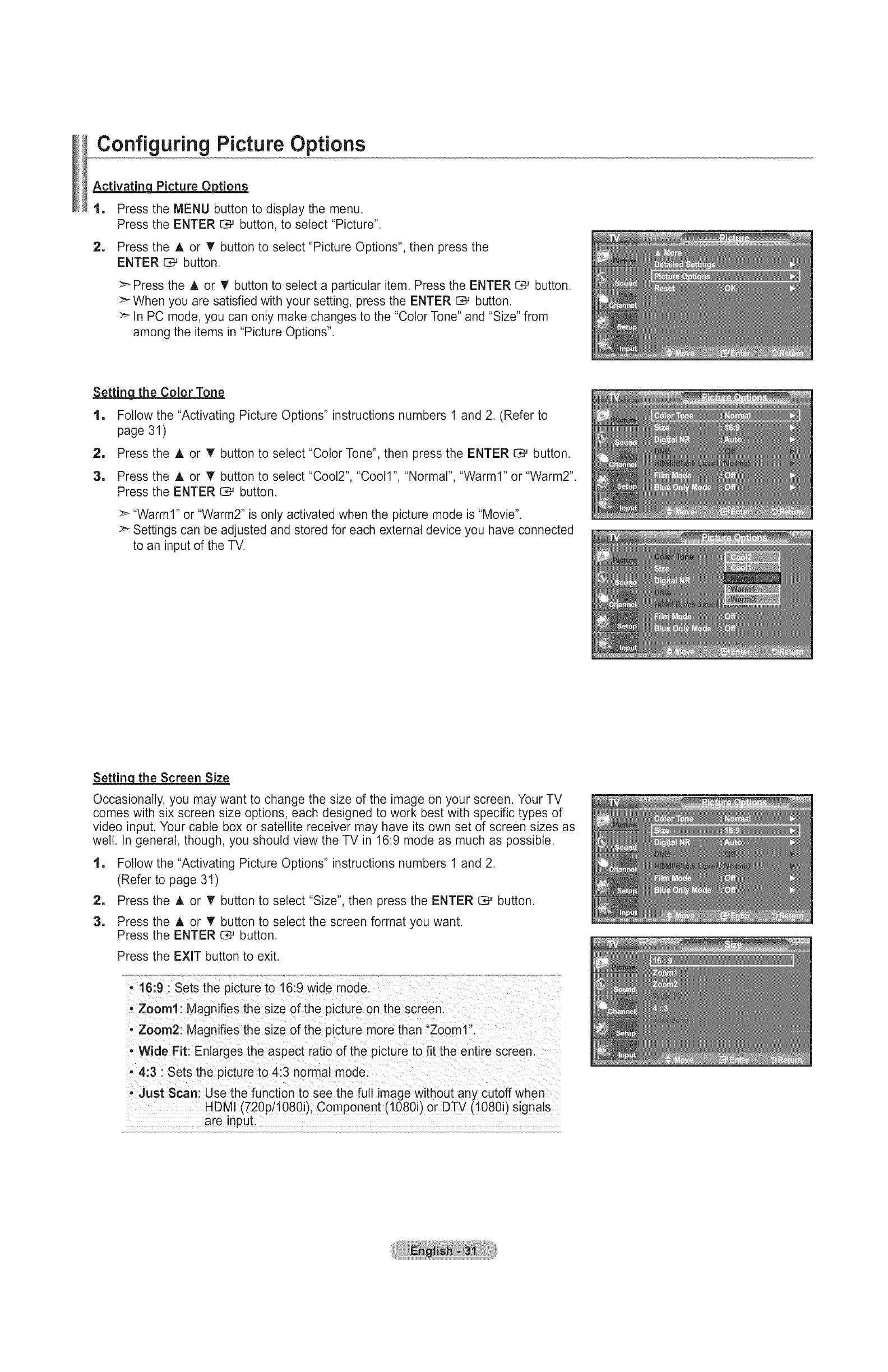 full-motion video. The images displayed on them should primarily be in the wide screen 16:9 ratio format, or expanded to fill the screen