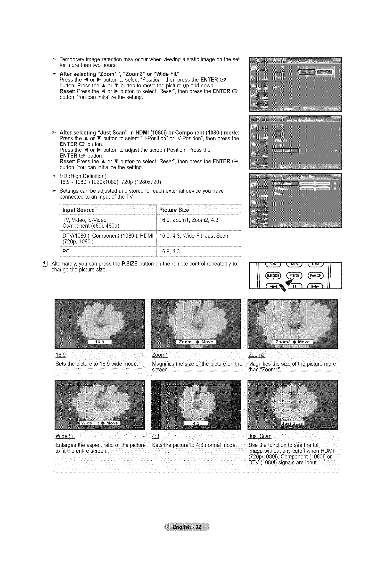 On LCD models that offer picture sizing features, use these controls to view different formats as a full screen picture.