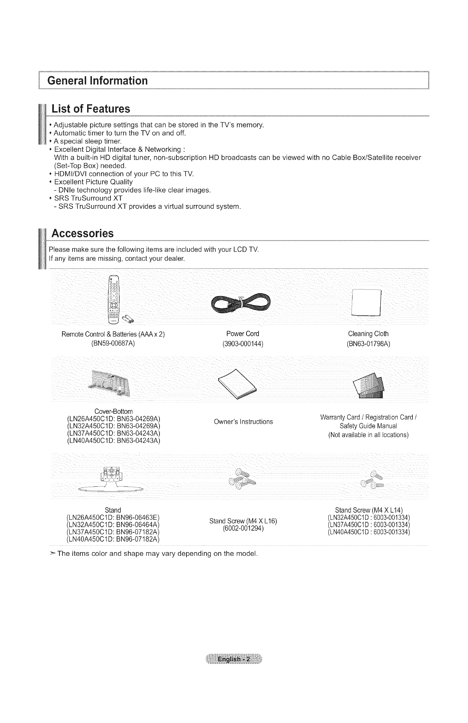 Samsung LN32A450C1DXZA User Manual LCD TV Manuals And Guides L0805147