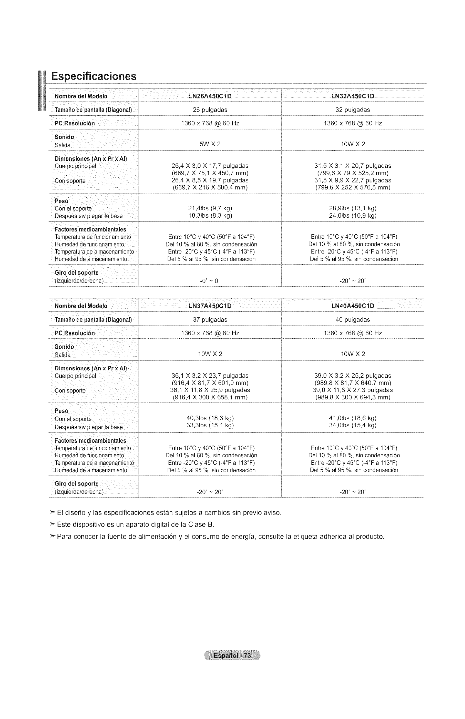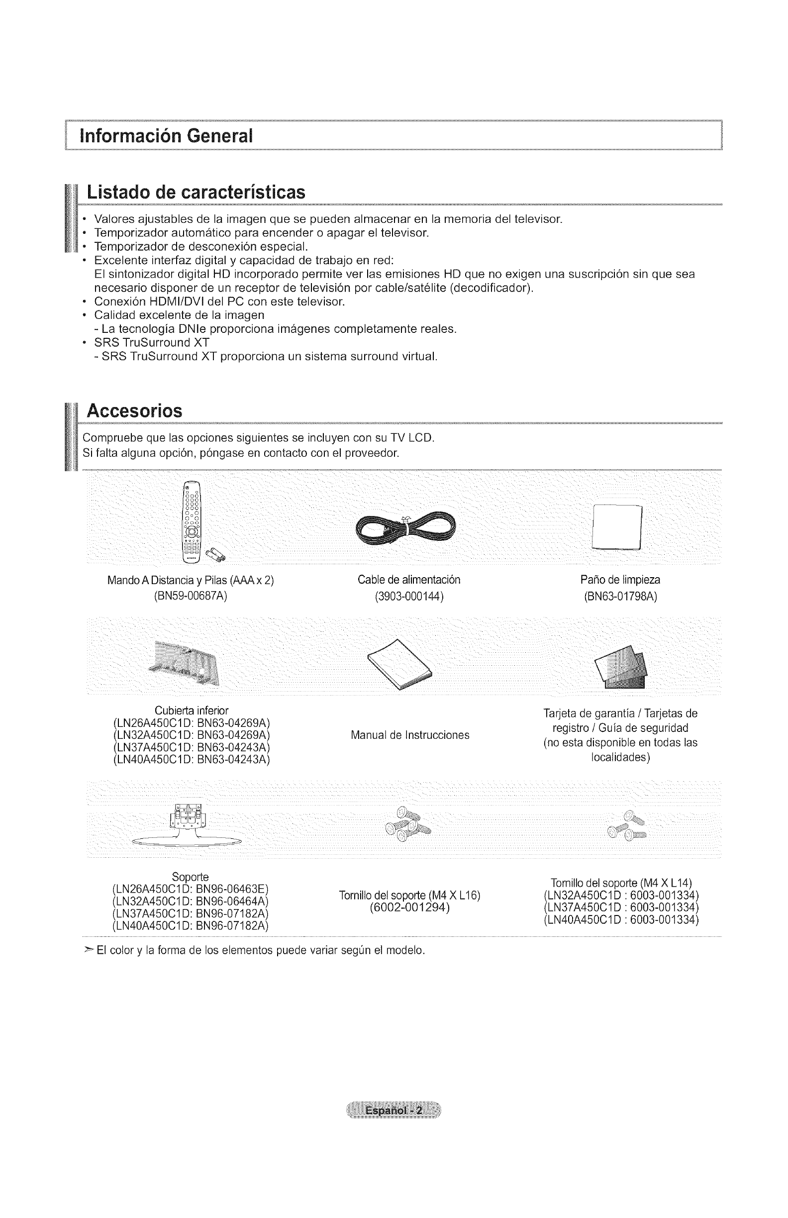 Nombre del Modelo LN37A450Cl D LN40A450C1D