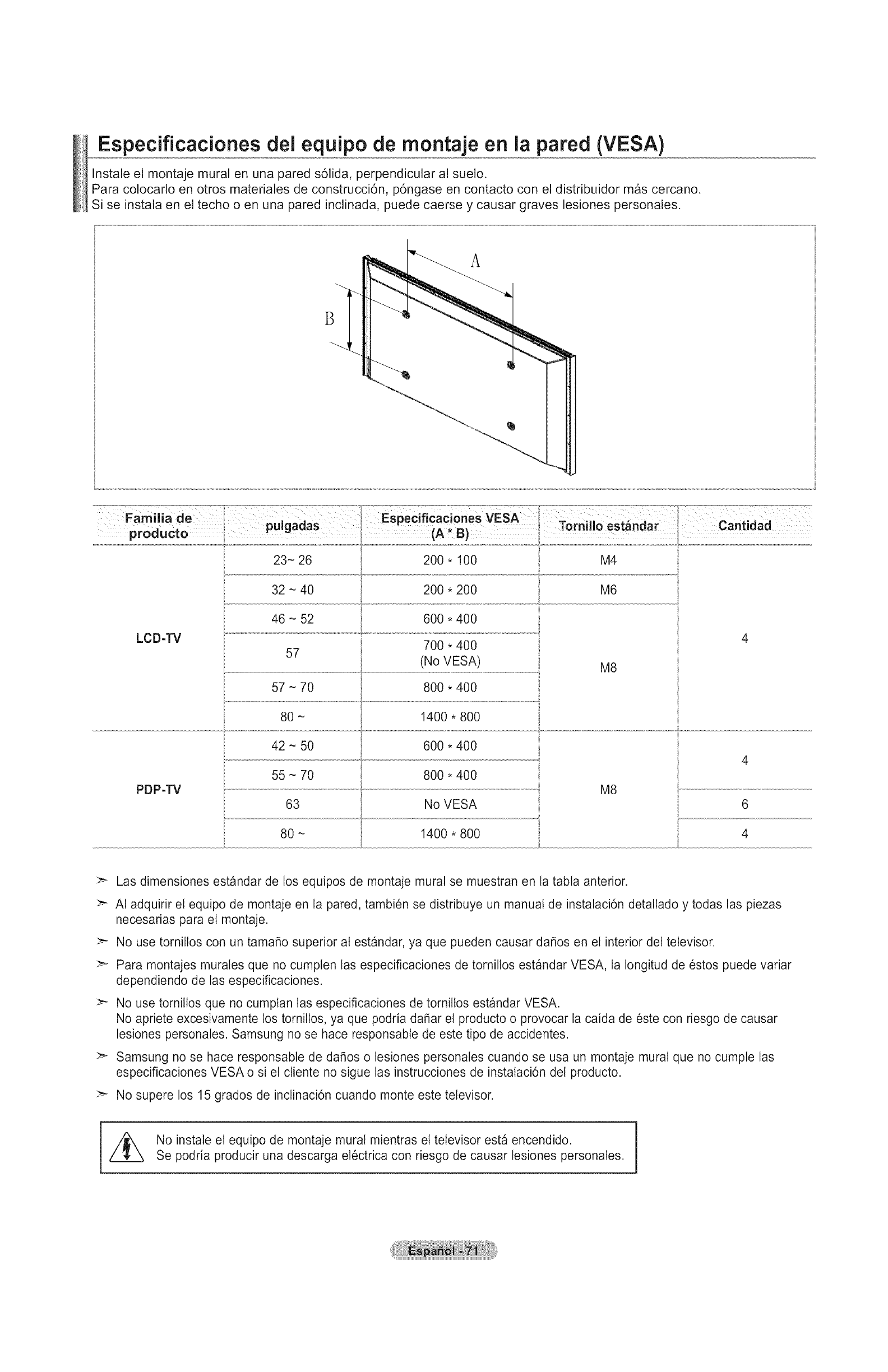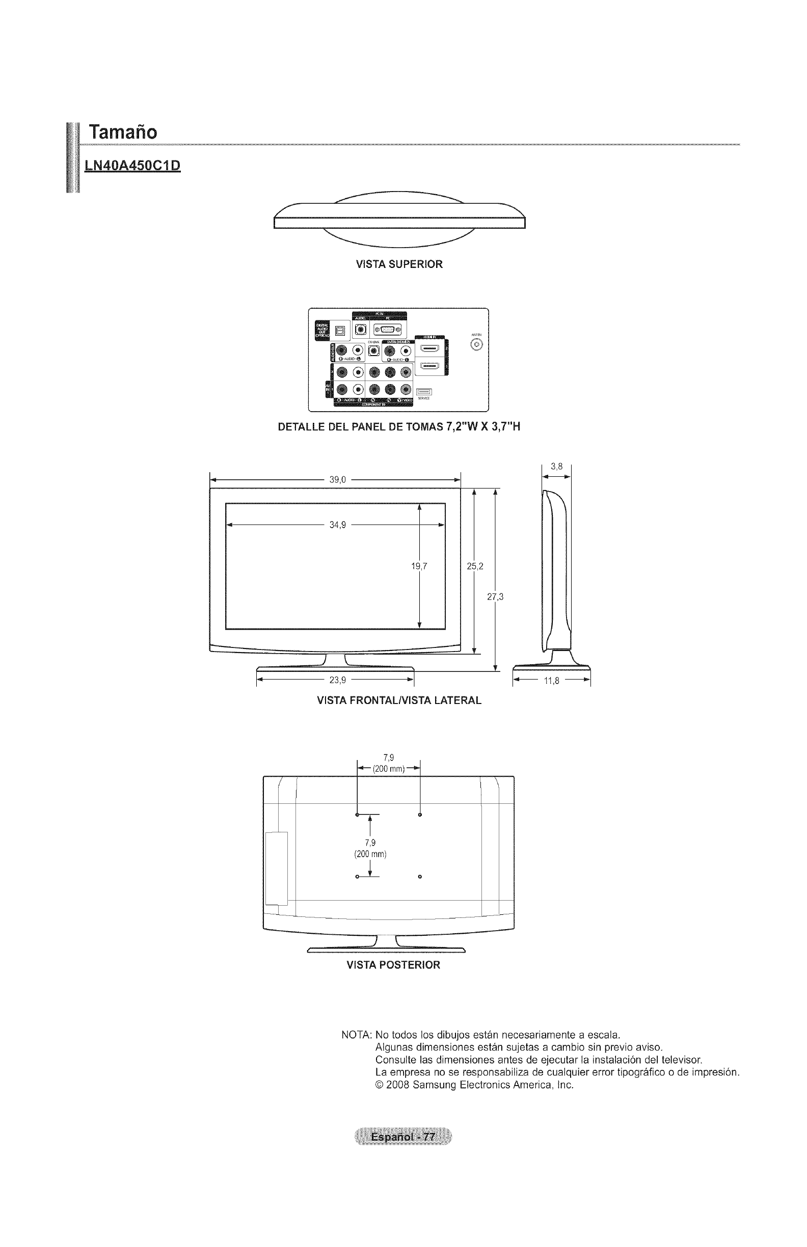 Consulte las dimensiones antes de ejecutar la instalaci6n del televisor.