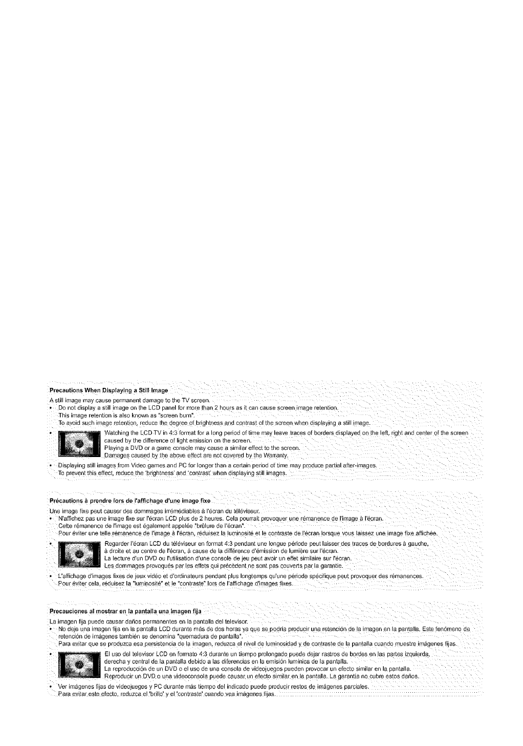 • No aeje una _lagen flja en la BanTa a LCD durante mas de dos noras ya que se oodri_- oredUClr una retenclon de a _lagen en la oantalla. Este fe-omeno ae
