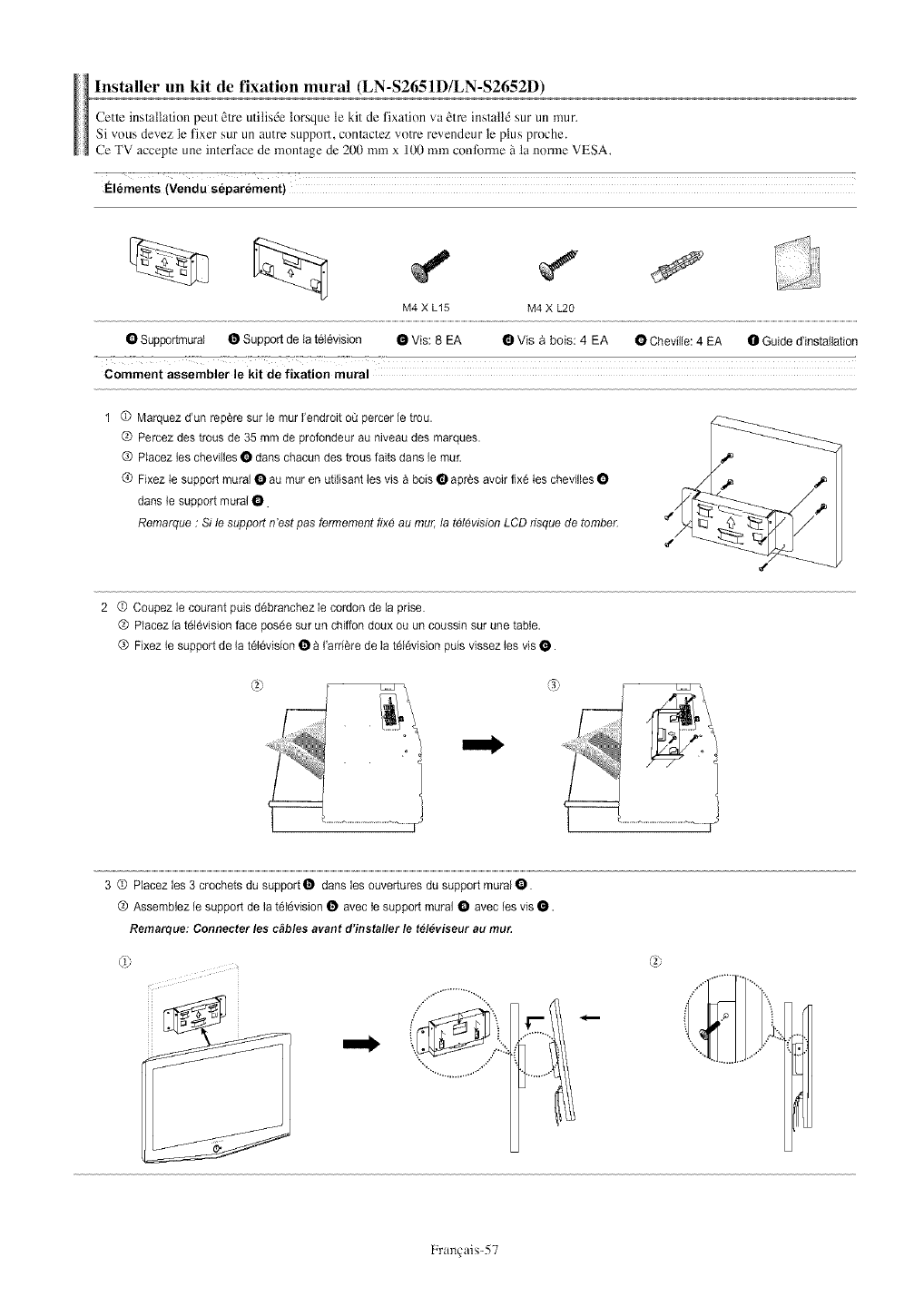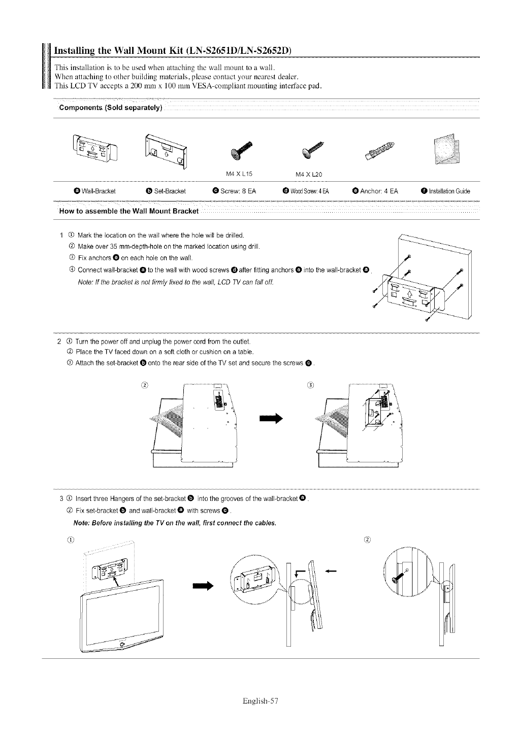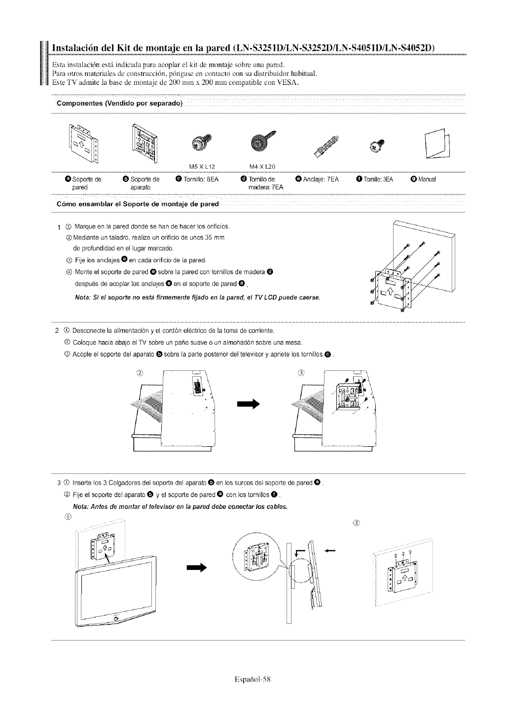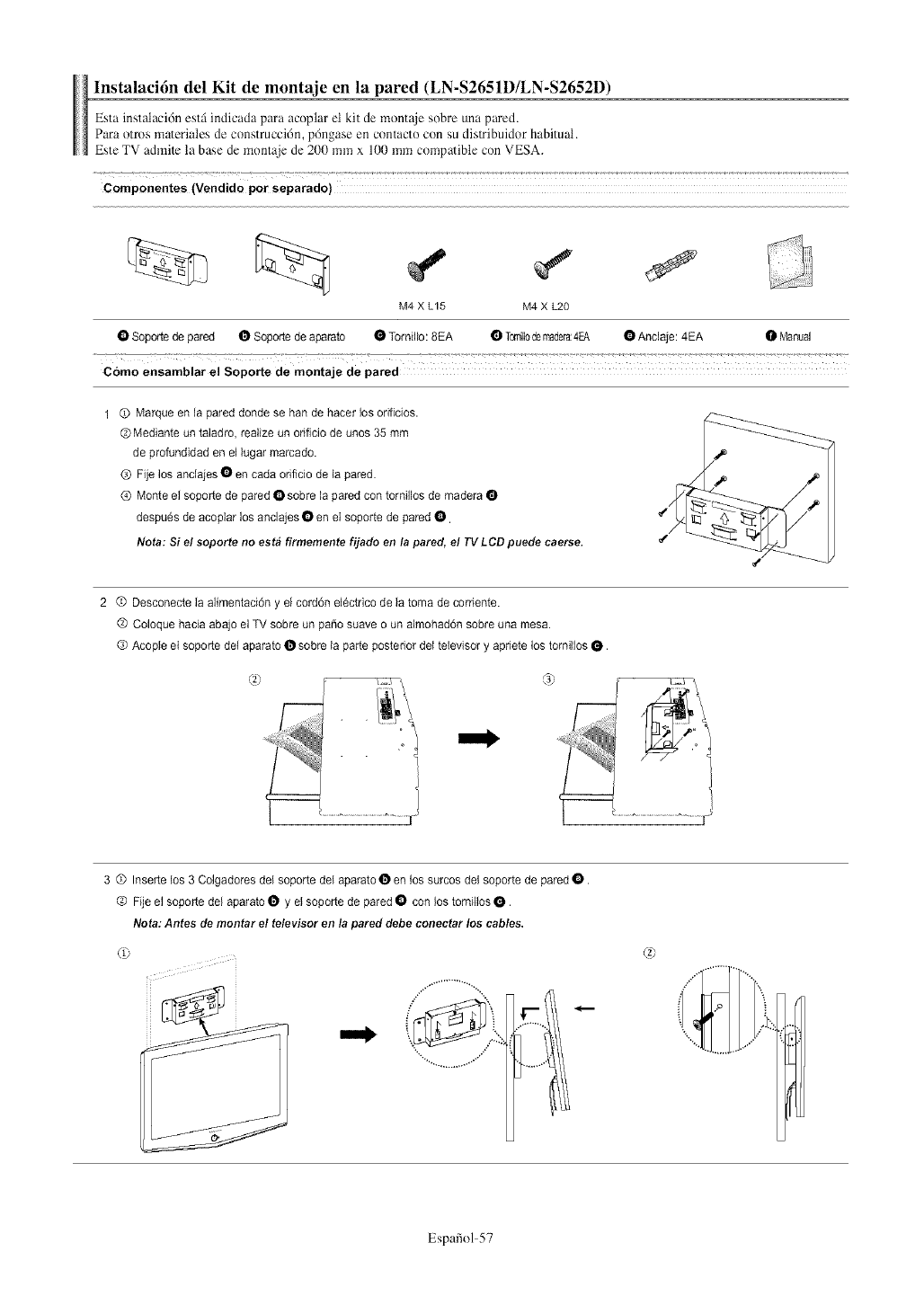 Instalaci6n del Kit de montaje en la pared (LN-S2651D/LN-S2652D)