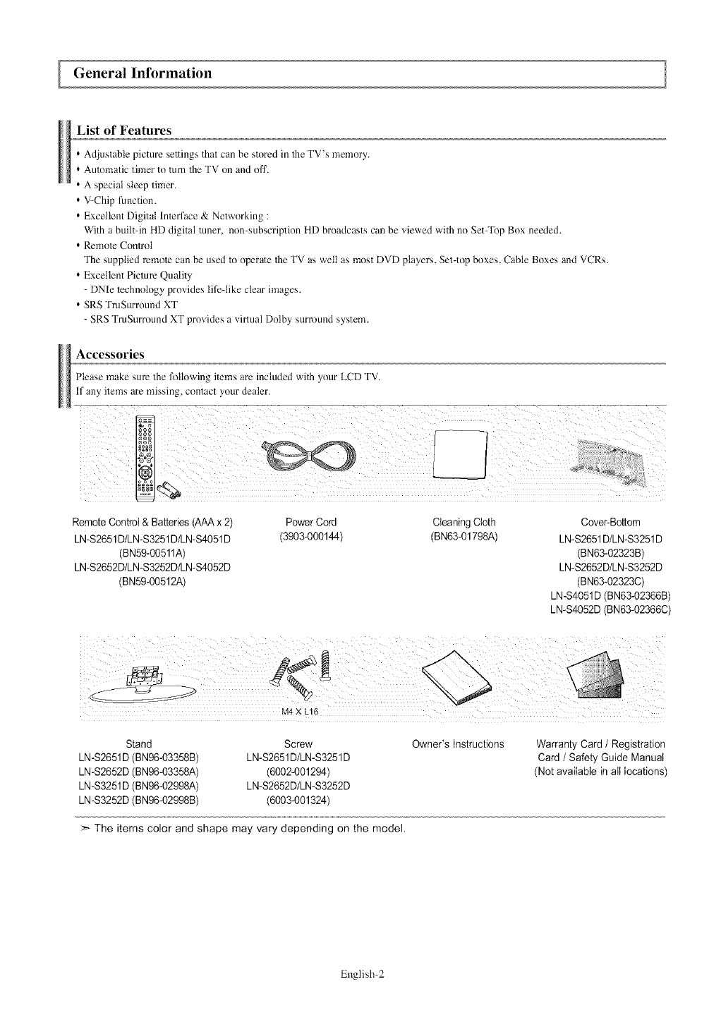 Samsung LN S3251D User Manual LCD TELEVISION Manuals And Guides L0606279
